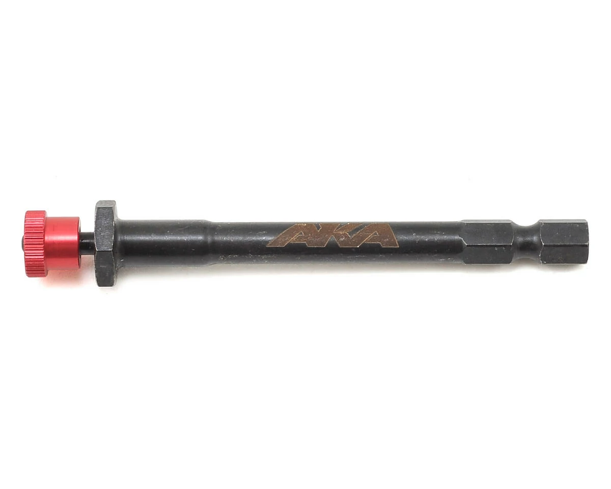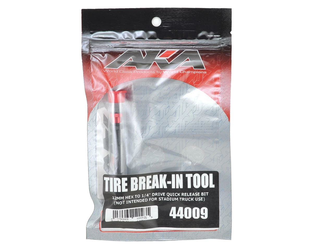 The AKA 1/10 Tire Break-In Tool is made in the USA and makes prepping your new tires a simple process. Designed to fit into any standard 1/4″ quick change drill and 12mm hex 1/10 wheels, the tool simply chucks into your drill on one end, and mounts your tire on the other end. Then adjust the direction of your drill and use your choice of sandpaper to get that perfect tread height. No more running in the parking lot to burn down the tread on your tires.