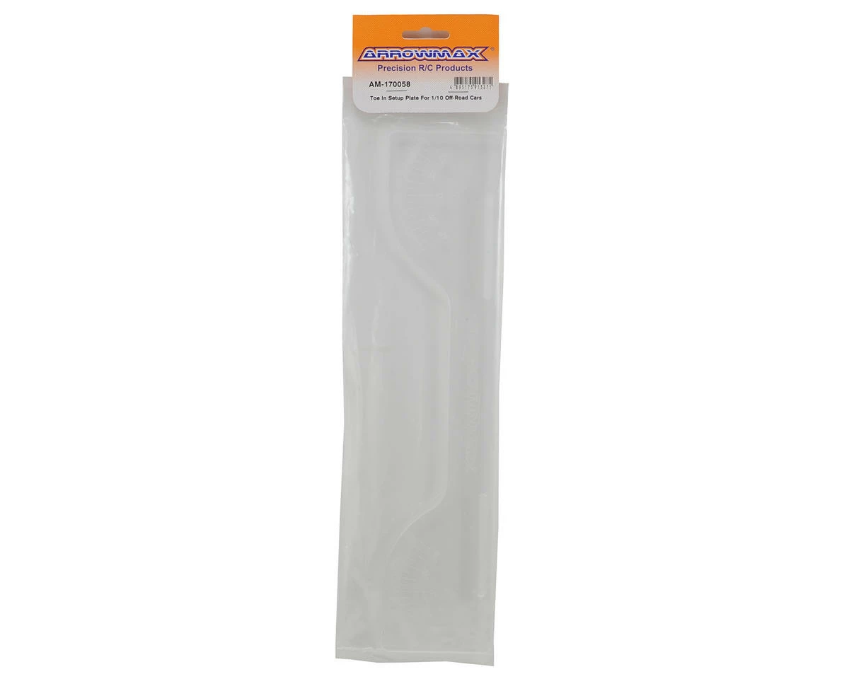 This is the Arrowmax 1/10 Off-Road Toe In Setup Plate. This plate is made from strong polycarbonate material for durability, and is recommended for use with Arrowmax 1/10 Off Road Setup Systems.