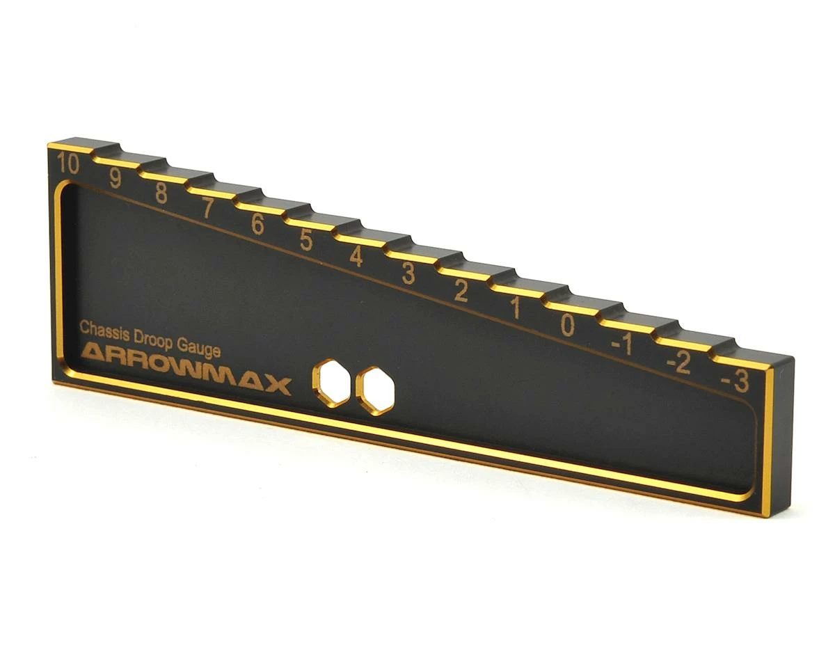 The Arrowmax Black Golden 1/10 & 1/8 Car Chassis Droop Gauge is used in combination with 20mm Droop Gauge Blocks to provide accurate droop measurements on your touring car. Scale ranges from -3 to 10mm in 1mm increments.