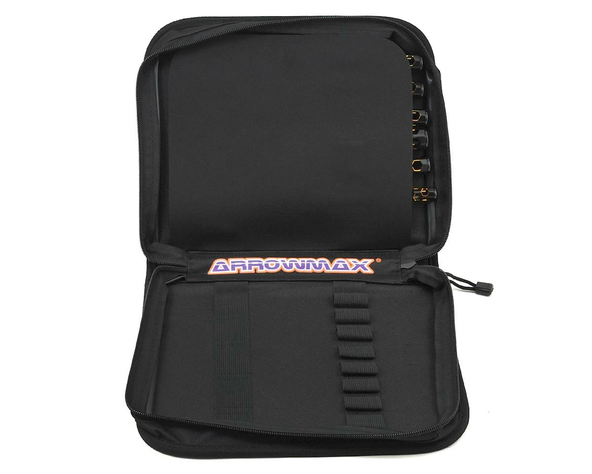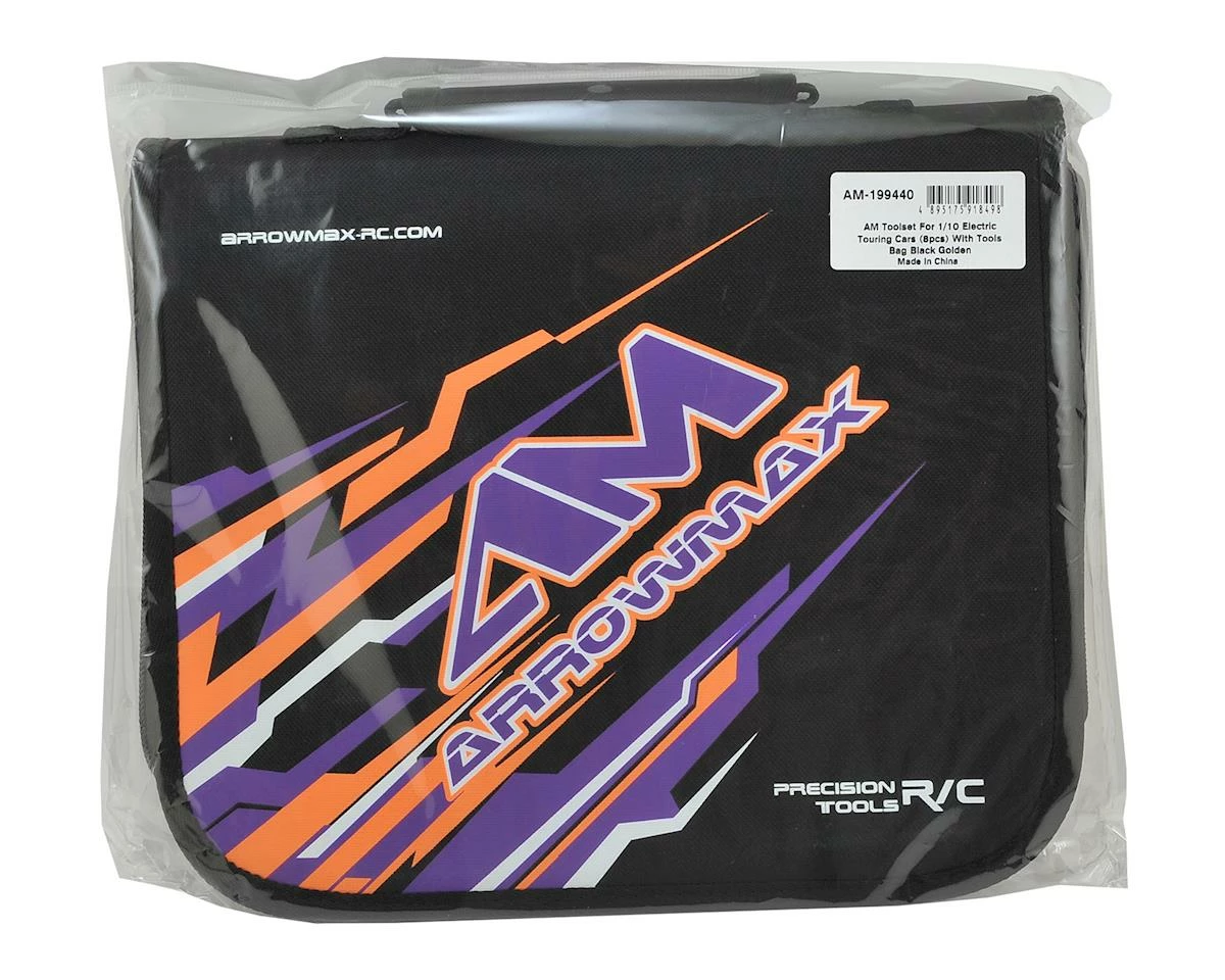 Arrowmax 1/10 Electric Touring Car Black Golden Tool Set. This eight piece kit includes a majority of the tools you need to keep your 1/10 touring car ready for battle. Hex wrenches, nut driver, arm reamer, turnbuckle wrenches – and even a body reamer!