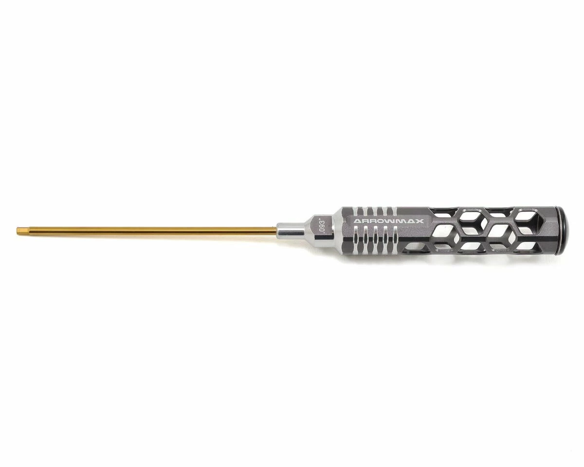 This is an Arrowmax 3/32″ Honeycomb Hex Wrench. Arrowmax tools feature an eye-catching, light weight, hollow honeycomb handle design. The 120mm long tips are spring steel and titanium nitride coated for durability. When combined with the lexan cap, you get a comfortable, controllable and lighter feeling tool that makes wrenching easier.