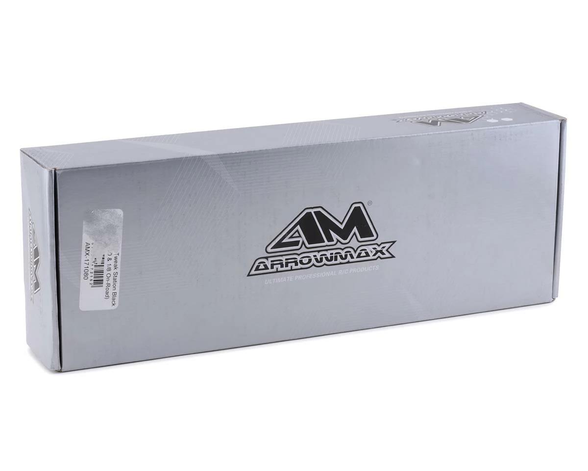The AM Arrowmax Tweak Station Black Golden fits 1/12 pan car, 1/10 touring cars and 1/8 on road cars. The quick tweak station allows you to quickly check and correct the tweak to help ensure proper balance of the chassis. Made using 7075 aluminum base plate material for durability and stylish looks. Package includes one quick tweak station.