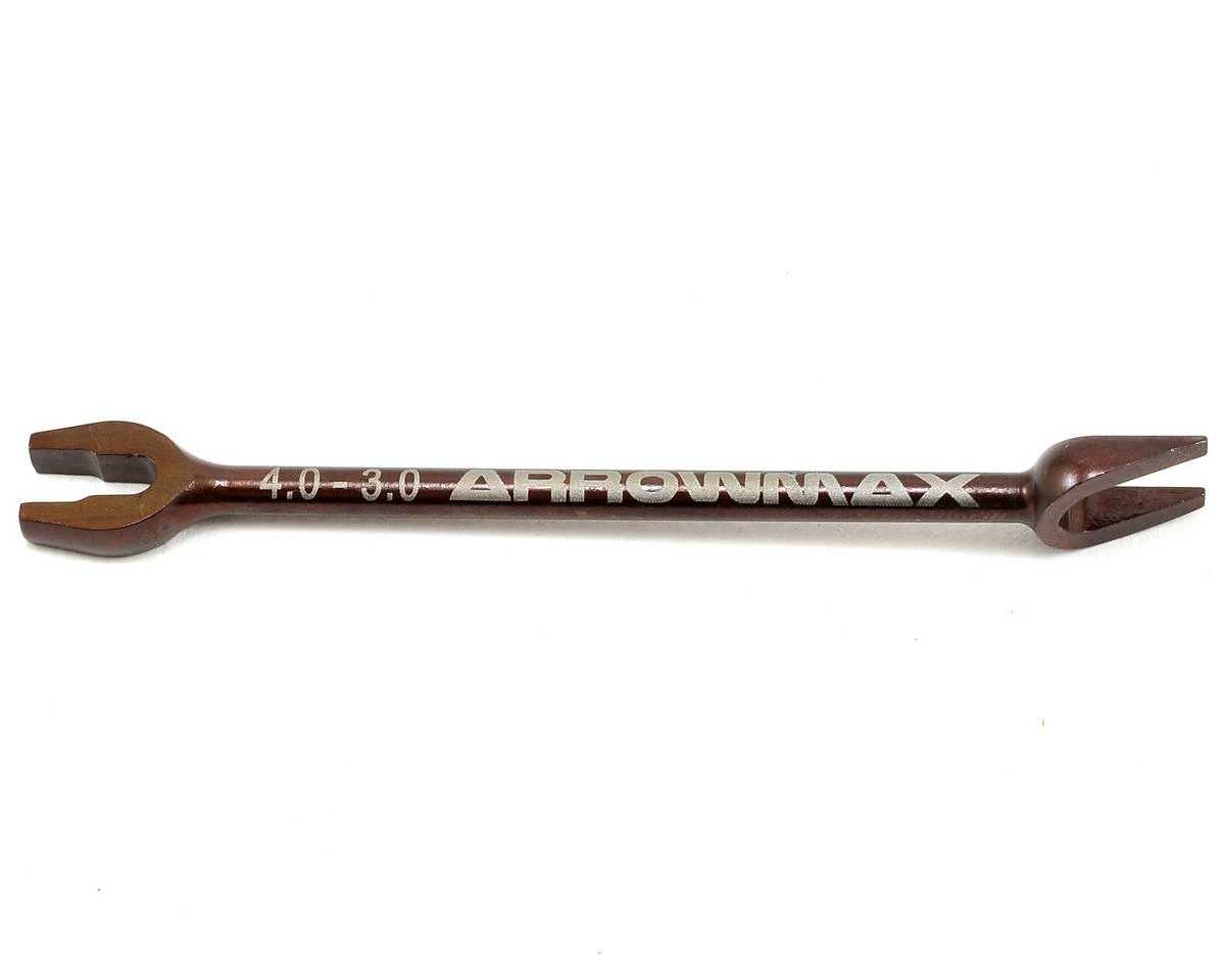 This is the Arrowmax Small Ball Cap Remover & Turnbuckle Wrench. This wrench is a great option for cars with 3mm or 4mm size links. Plus, the wedged tip on the other side makes it easy to pop off your ball cups without doing any damage. Made from high-quality spring steel, the tool is lightweight and strong, and the compact size makes storage easy.