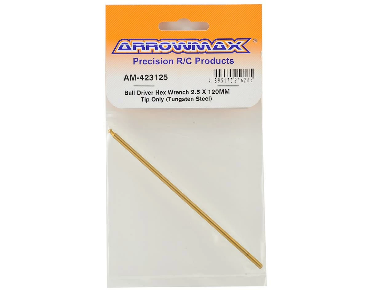 Arrowmax Tungsten Steel Replacement Ball End Hex Wrench Tip. This tip is machined from tungsten steel and has been ti-nitride coated for durability. Tip features a 120mm long shaft, with a 2.5mm ball tip.