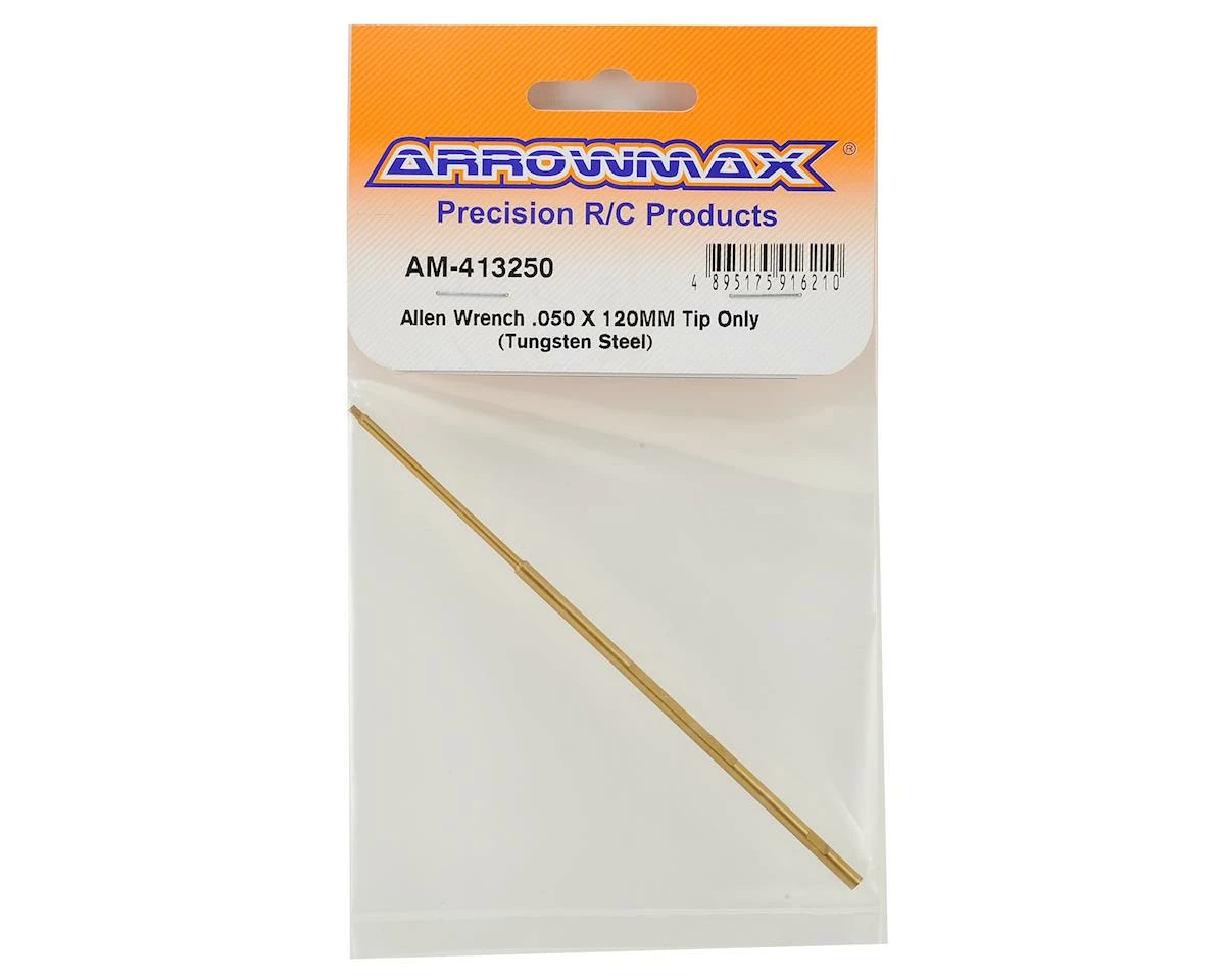 Arrowmax Tungsten Steel Replacement Hex Wrench Tip. This tip is machined from tungsten steel and has been ti-nitride coated for durability. Tip features a 120mm long shaft, with a .050″ tip.