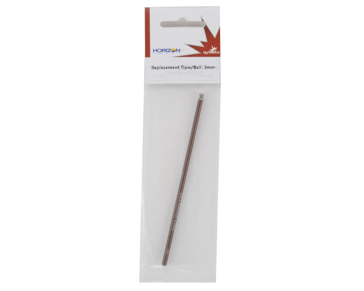 This is a replacement Dynamite 3mm Machined Hex Driver Tip with Ball End. These tips are machined from steel and feature a protective coating, with an engraved size mark on the tip for identification.