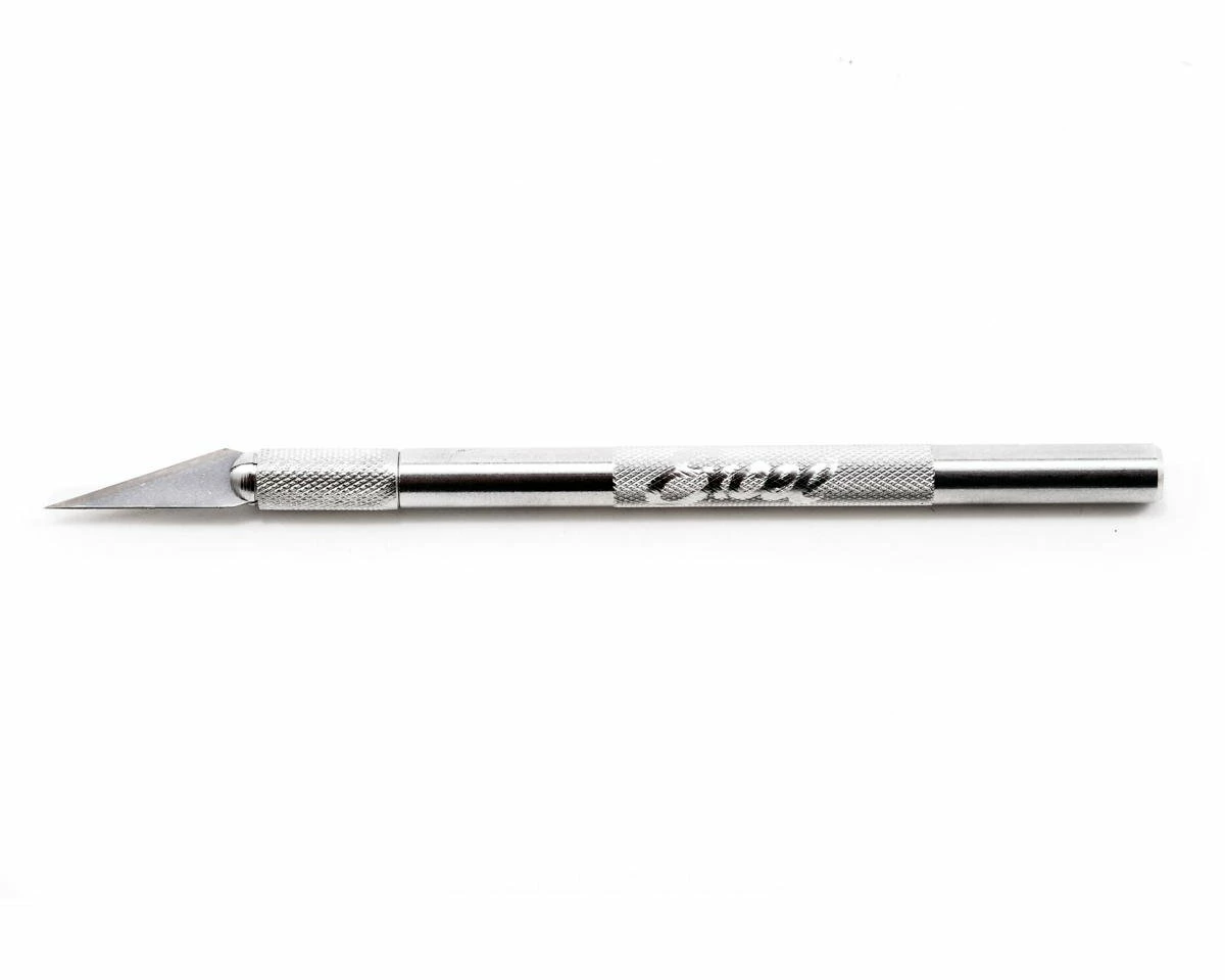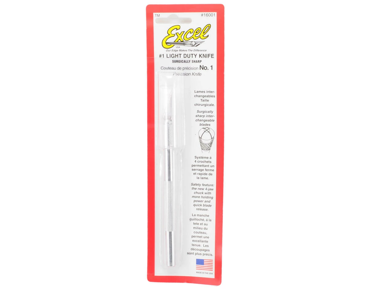 This is a light duty with a safety cap from Excel. This knife measures 5/16″ x 4 3/4″ L with 4 jaw machined aluminum chuck for secure blade positioning, includes Super Sharp Blade and a Snug fitting plastic Cap or Scabbard for your protection. Used for precision cutting, trimming and stripping of paper, plastic, wood, cloth and film.