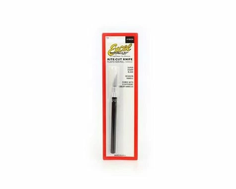 Excel Rite Cut Hobby Knife. Package includes hobby knife with black hex handle and factory installed blade and safety cap.