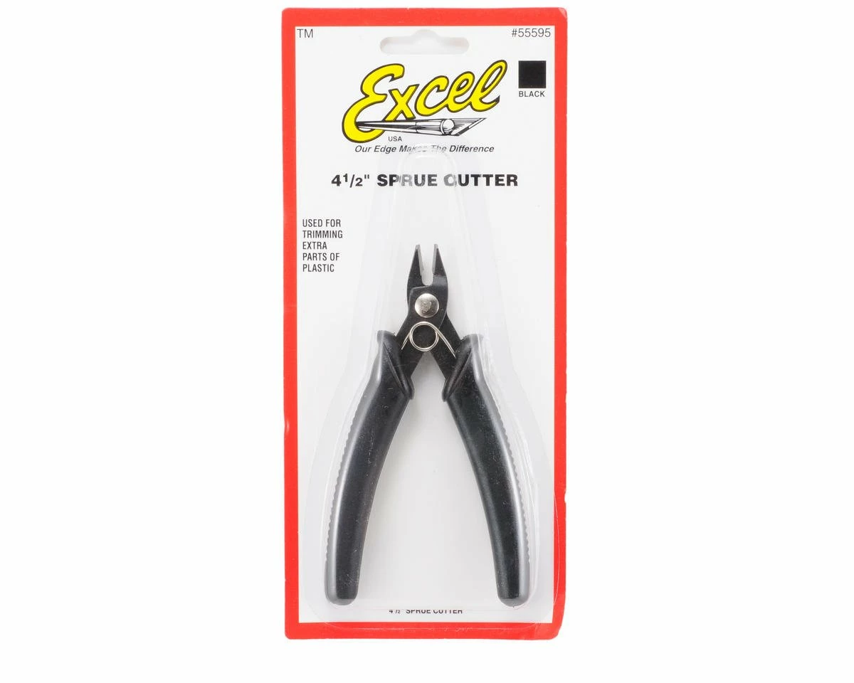 This is a pair of Excel Black Sprue Cutters. The extra sharp blade allows incredibly close cuts, which reduces the need for extra trimming. Cutter features soft grip handle, with a positive action return spring.