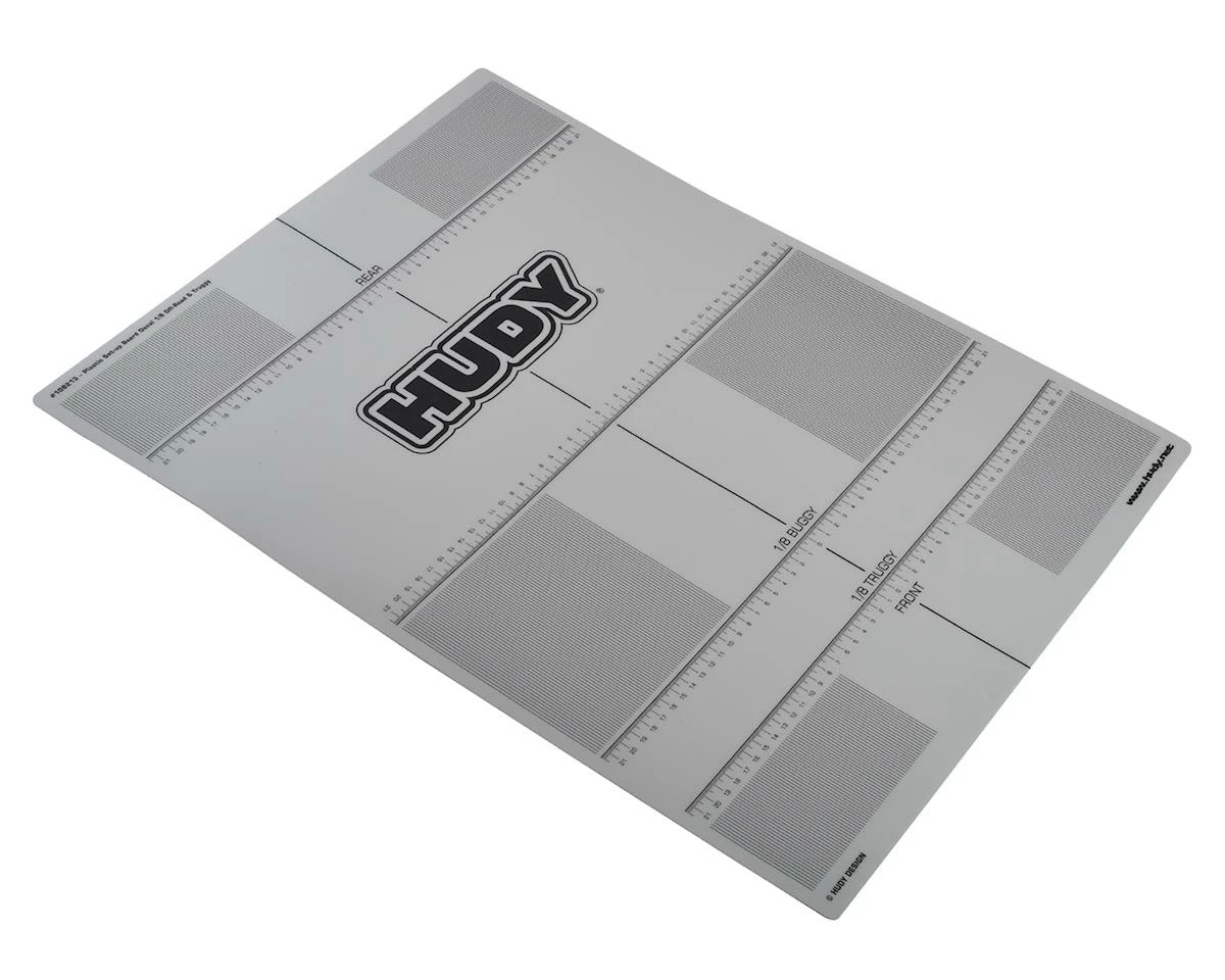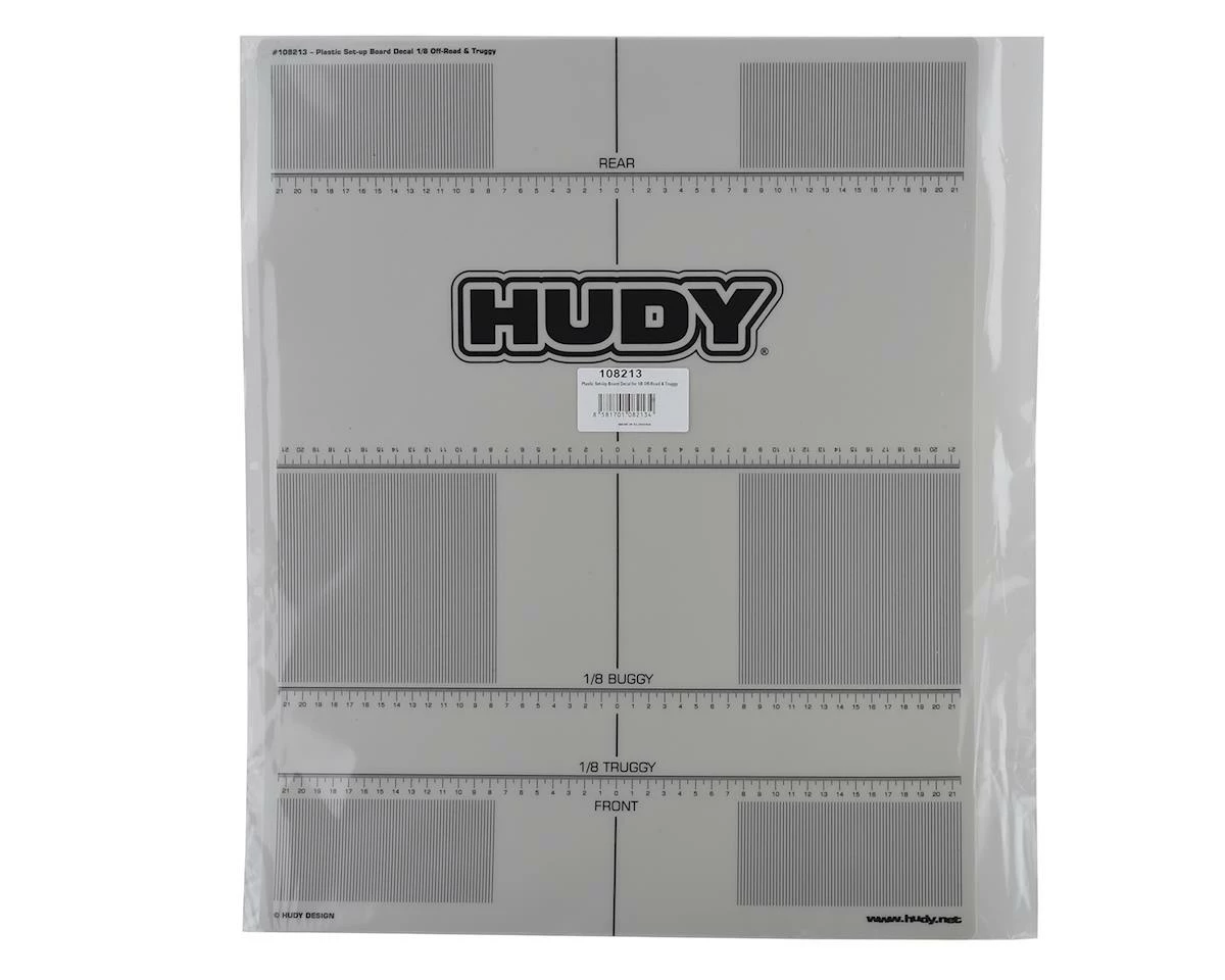This is a Hudy 1/8 Off-Road & Truggy Plastic Set-Up Board Decal, intended for use with the 1/8 Off-Road & Truggy Plastic Set-Up Board. This decal is made from tough plastic and provides a smooth, liquid-resistant surface for quick & easy track-width adjustment. The display features accurate, clear markings with 1mm grid for adjustment of 1/8 off-road car & truggy.