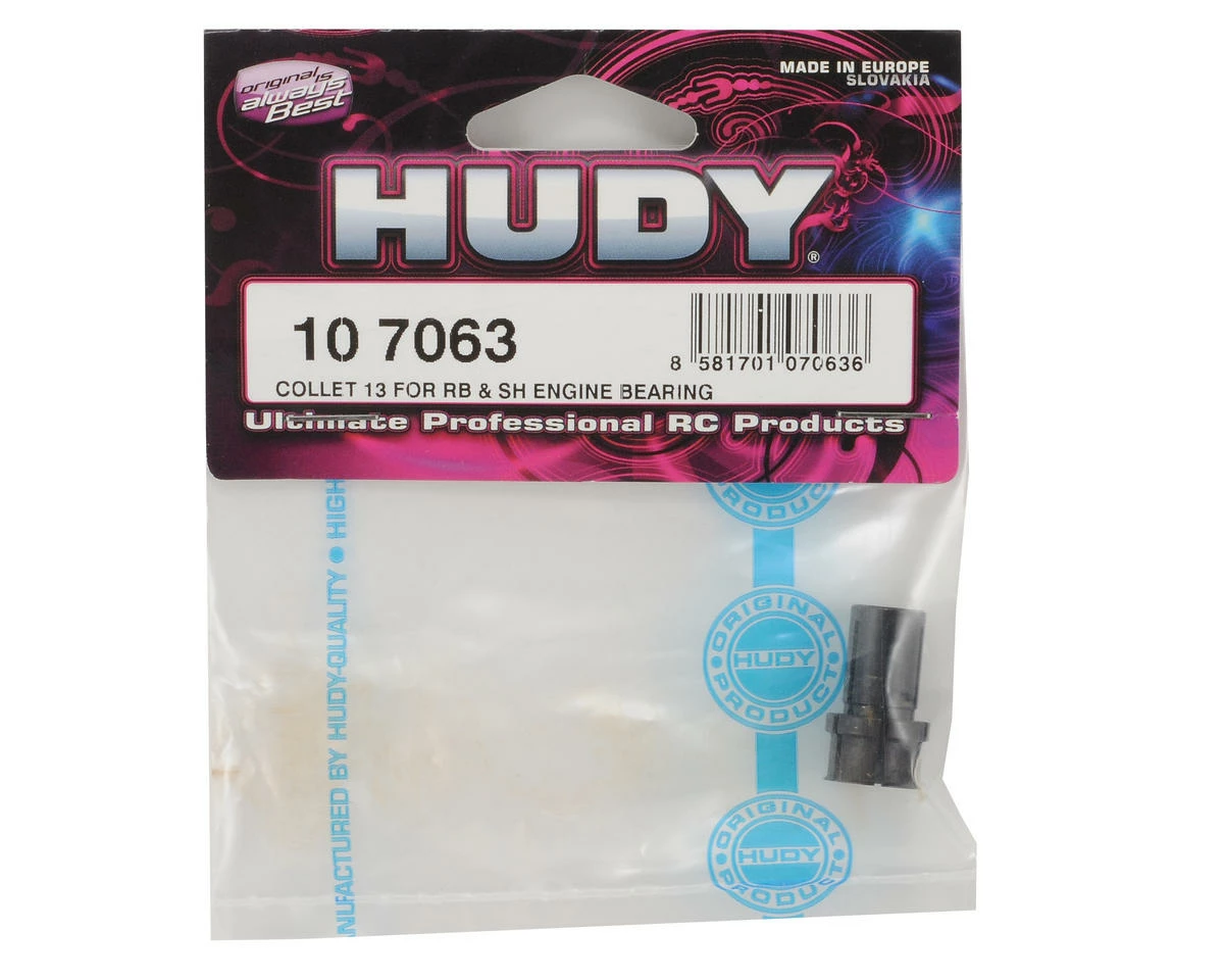 This is an optional Hudy 13mm Ultimate Engine Tool Collet, and is intended for use with the HUDY ultimate engine tool set. This collet allows you to adapt your Hudy Ultimate Engine Tool set for use with RB & SH Engines, as well as any other engine that uses a rear bearing with a 13mm inner diameter.