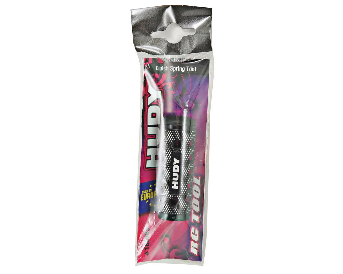 This is the Hudy Clutch Spring Tool. Designed for 1/8 & 1/10 on-road nitro engines, and compatible with most current centrifugal axial clutches, the HUDY Clutch Tool allows you to easily mount/dismount the clutch spring preload collar and make fine preload adjustments. For mounting; insert the preload adjusting collar into the tool, press onto the spring, and then start threading it onto the clutch nut. Dismounting is done in the reverse order. For preload adjustment, place the tool over the collar and tighten or loosen the collar.
