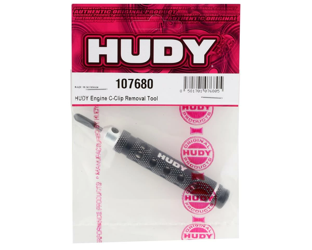 Hudy Engine C-Clip Removal Tool. This tool is designed to easily remove C-clips found in your nitro engine. Package includes one removal tool.