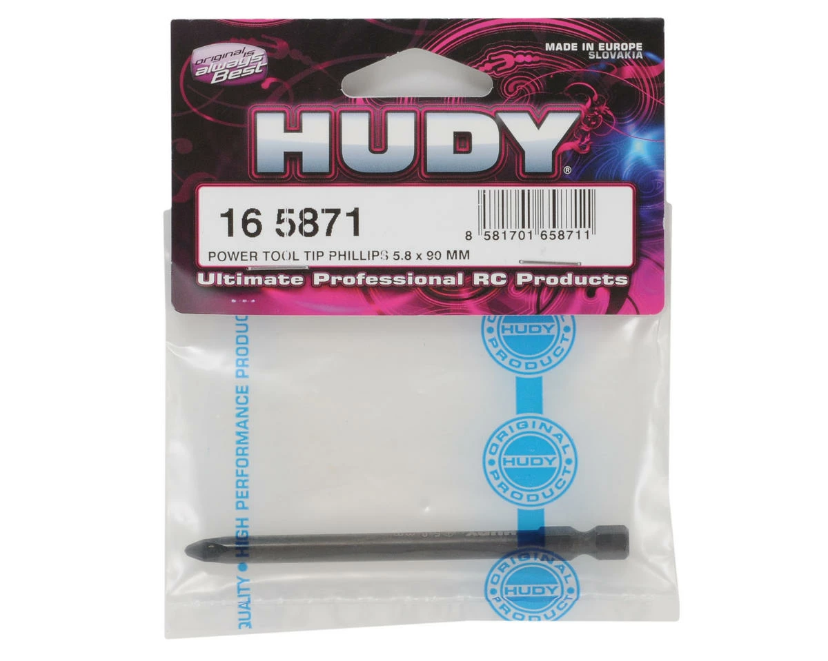This is a HUDY 5.8 x 90mm Phillips Head Screw Driver Power Tool tip madefrom HUDY Spring Steel™. These power tool tips are manufactured fromworld-renowned HUDY Spring Steel™ and available in most popular sizes.The end of the tips are manually ground for maximum precision andperfect fit to the fastener, and additionally heat treated and hardenedfor maximum life.