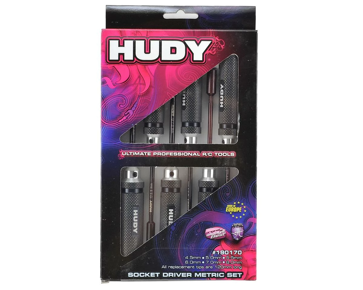 This is a set of Hudy Professional nut drivers with six popular metric sizes. Ultra-lightweight, ultra-durable nut drivers feature superb fit and finish. CAD-designed socket tip, made from world-renown Hudy Spring Steel, very precisely fits the corresponding hex nut without chance of rounding or marring corners.