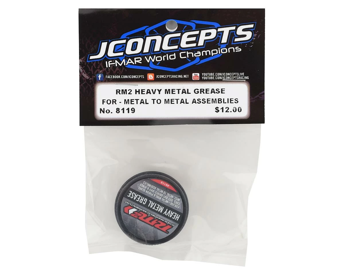 The JConcepts RM2 Heavy-Metal Grease was developed by JConcepts together with RM2 to deliver a heavy-metal grease for a multitude of uses in the rc industry. The competition starts in the pits during rebuilds, freshening a car or simply building a new kit. The heavy-metal grease is the perfect complement for metal to metal parts in the drive-line such as ring and pinion gear assemblies. It’s also a great spread for CVA’s, diff out-drives and inside the diff on the seated o-rings.