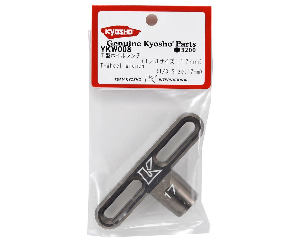 This is a Kyosho 17mm Off-Road T-Handle Wheel Wrench. This CNC machined 17mm aluminum wheel wrench is ideal for removing or installing the wheels in any 17mm off road application. Machined from high quality aluminum, this wrench features a large T-handle for leverage, while the hole in the handle allows easy drive shaft removal and replacement.