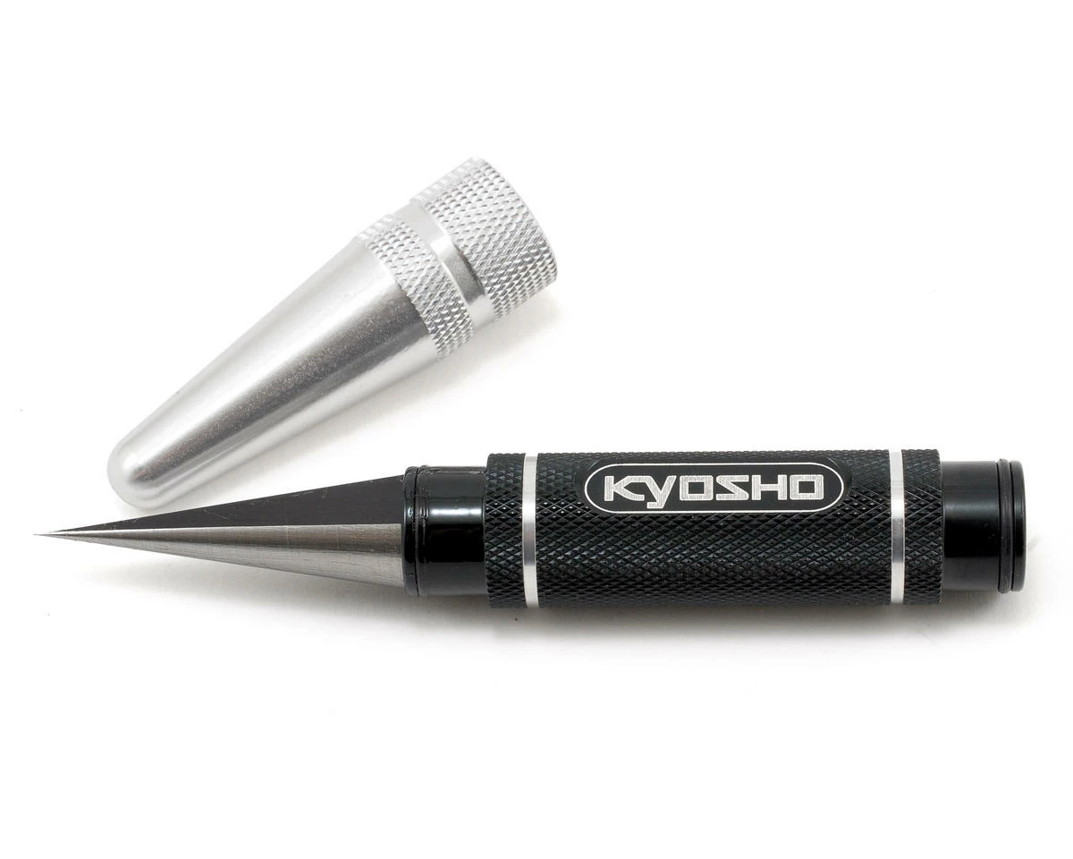 This is the Kyosho SP Body Reamer. This reamer features a high quality light-weight aluminum handle with a special knurled anti-slip surface. This reamer is ideal to bore holes in lexan bodies, as well as plastic wings and is supplied with an aluminum cap to protect the tip from being damaged.