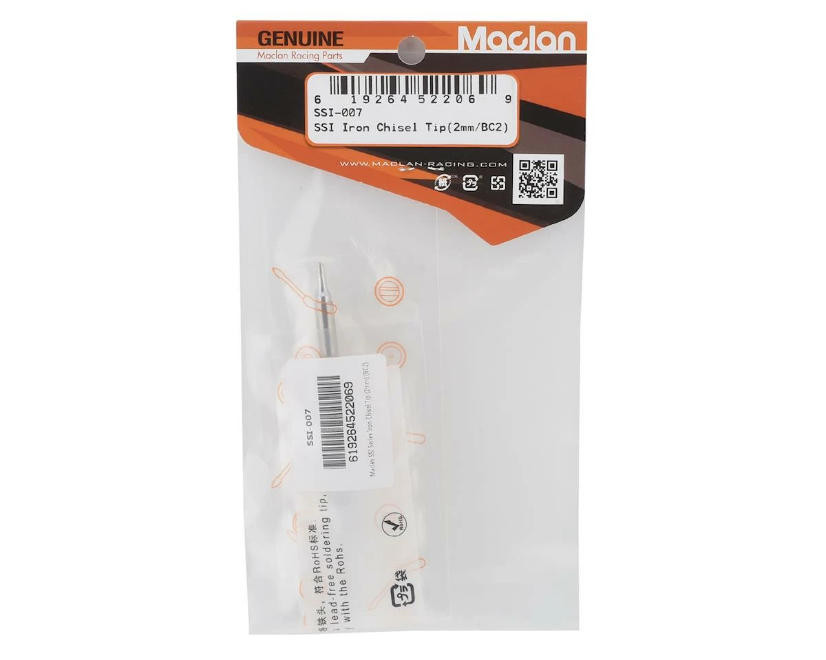 This is an optional Maclan “BC2” 2mm Chisel SSI Soldering Iron Tip, intended for use with the Maclan SSI Series Simple Soldering Iron Set.