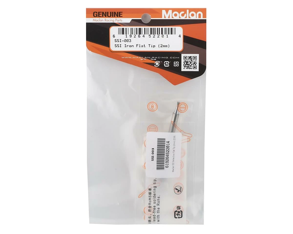 This is a replacement Maclan “D24” 2mm Flat SSI Soldering Iron Tip, intended for use with the Maclan SSI Series Simple Soldering Iron Set.