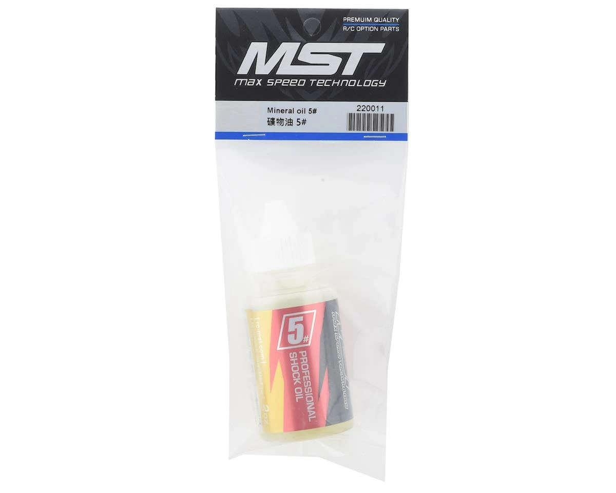 This is a 2oz. bottle of MST #5 of Mineral Oil, a specific mineral damper oil intended to provide good lubricity and durability to the kits shocks. The 59ml bottles come in various weights; choose the right weight depending on your application.