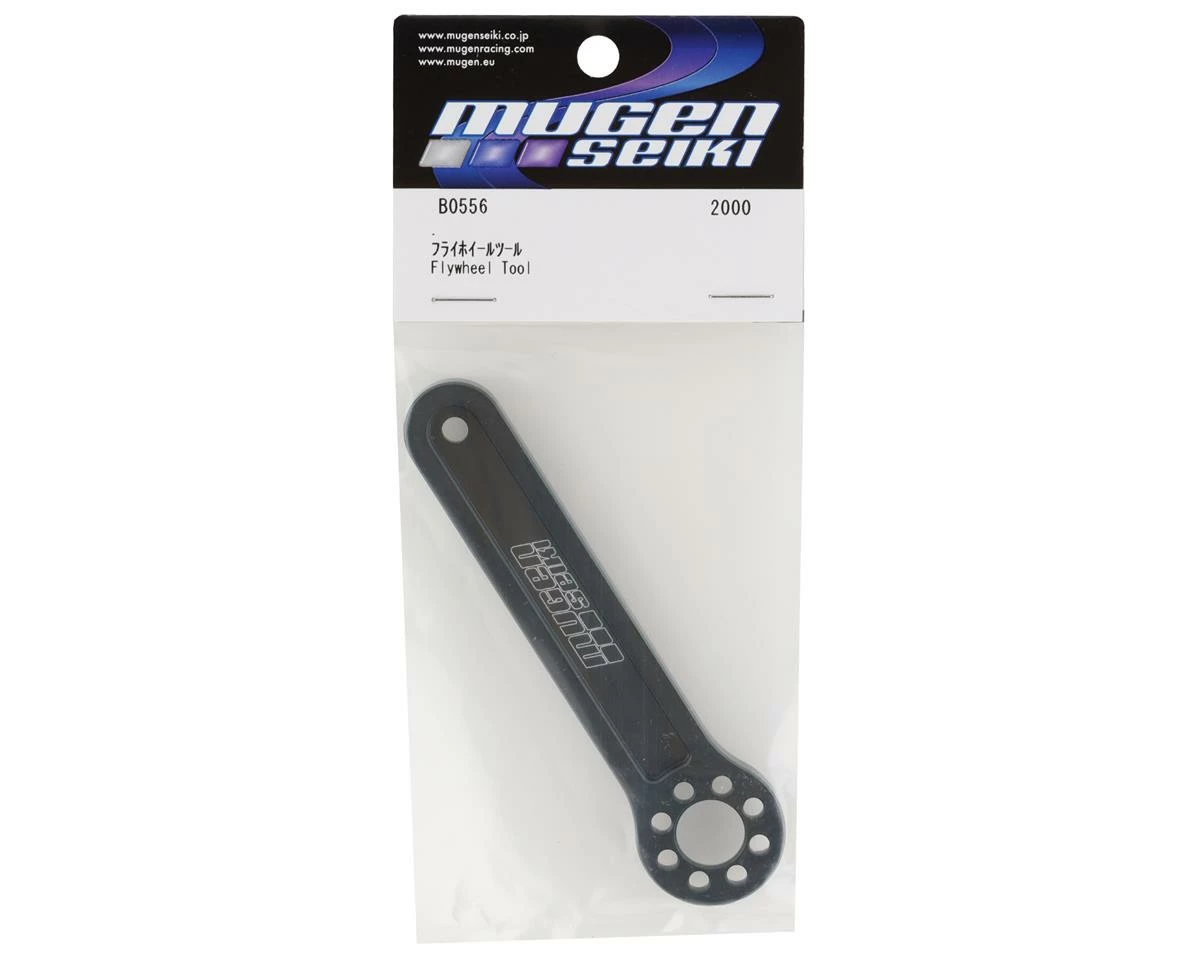 Mugen Seiki Flywheel Tool. This heavy duty flywheel tool offers a reliable and easy way to tighten or remove the nut on your Mugen flywheel (MUGE2714). Constructed from machined aluminum this tool offers the strength and quality to last, with the looks to match. Package includes one aluminum flywheel tool.