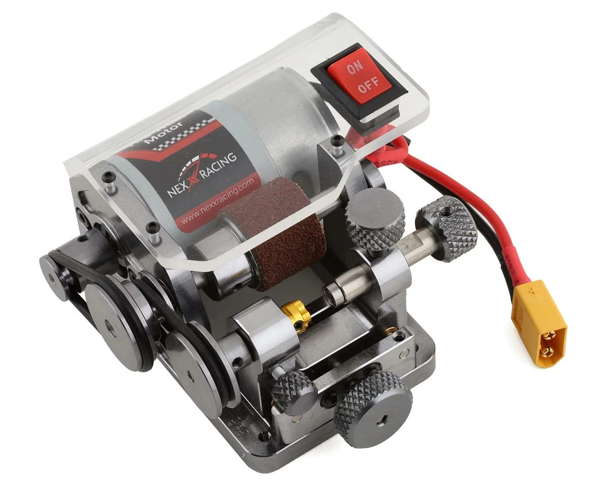 The NEXX Racing Mini-Z Tire Truer allows you to get precise and consistent results unlike before on your Kyosho Mini-Z tires. When paired with an input battery between 7V and 12V (2s LiPo suggested with XT-60, you can precisely adjust the tire diameter and angle with ease in a matter of minutes. The angle can be set to -0.5, -1, 0, and 0.5 degrees to suit any needs of various drivers, chassis, and track requirements. Both rubber and foam tires can be cut with this tire truer.