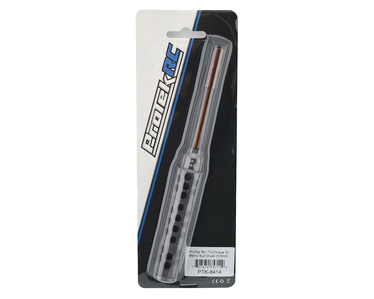 The ProTek R/C “TruTorque SL” 5.5mm Metric Nut Driver features a large 20mm diameter handle with machined relief holes and cross hatch knurling to reduce weight and provide a high grip surface. The end of the handle features a rotating end cap that allows the tool to spin in your palm, maximizing comfort during long wrench sessions. Plus, the tip size is laser etched in not one – but the THREE different spots on the handle to help simplify identification. The precision cut tool steel tips provide an exceptional fit with the fastener, and feature a bronze colored finish that not only looks good, but also helps to protect the steel from corrosion.