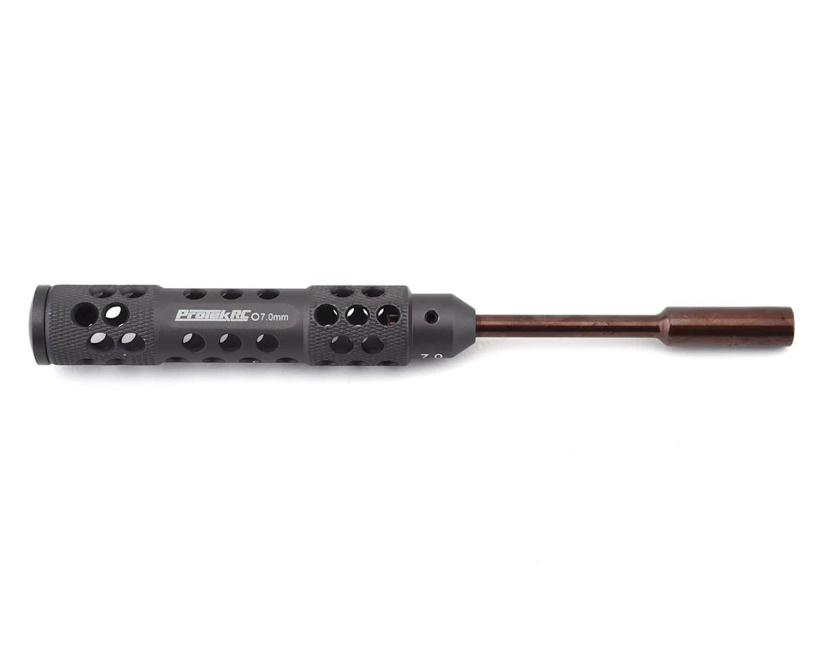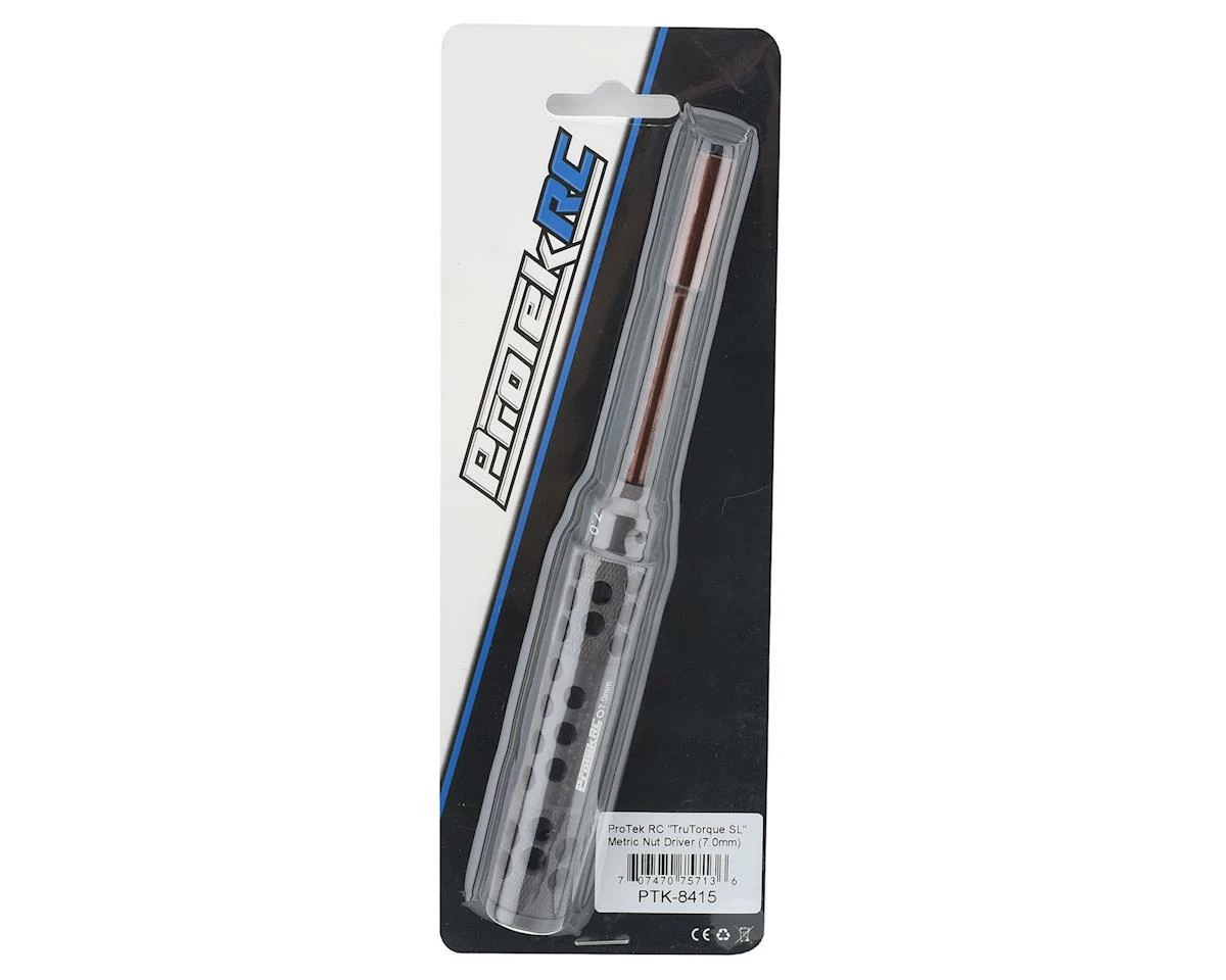 The ProTek R/C “TruTorque SL” 7.0mm Metric Nut Driver features a large 20mm diameter handle with machined relief holes and cross hatch knurling to reduce weight and provide a high grip surface. The end of the handle features a rotating end cap that allows the tool to spin in your palm, maximizing comfort during long wrench sessions. Plus, the tip size is laser etched in not one – but the THREE different spots on the handle to help simplify identification. The precision cut tool steel tips provide an exceptional fit with the fastener, and feature a bronze colored finish that not only looks good, but also helps to protect the steel from corrosion.