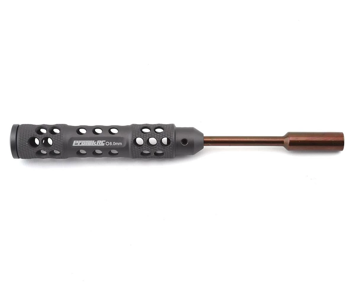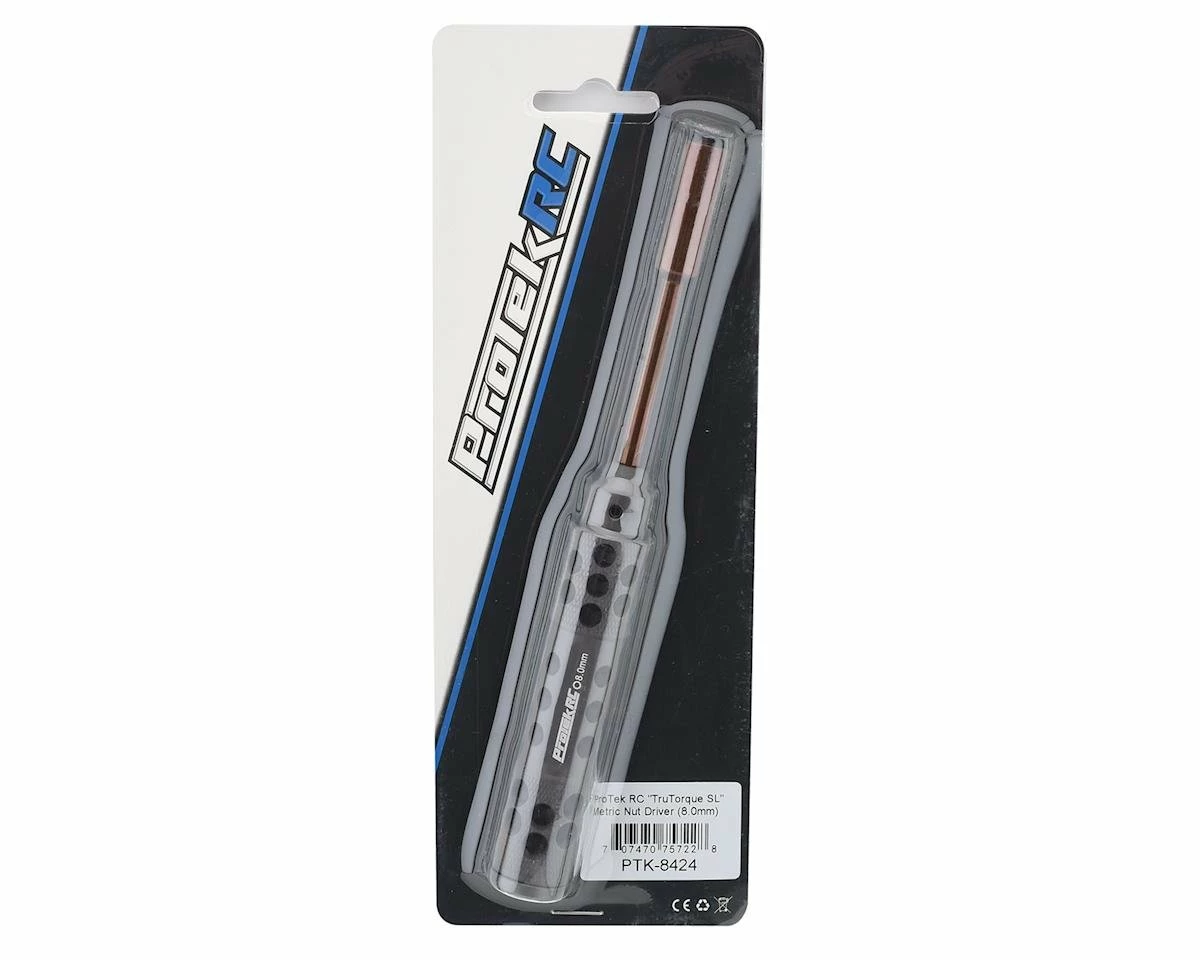 The ProTek R/C “TruTorque SL” 8.0mm Metric Nut Driver features a large 20mm diameter handle with machined relief holes and cross hatch knurling to reduce weight and provide a high grip surface. The end of the handle features a rotating end cap that allows the tool to spin in your palm, maximizing comfort during long wrench sessions. Plus, the tip size is laser etched in not one – but the THREE different spots on the handle to help simplify identification. The precision cut tool steel tips provide an exceptional fit with the fastener, and feature a bronze colored finish that not only looks good, but also helps to protect the steel from corrosion.