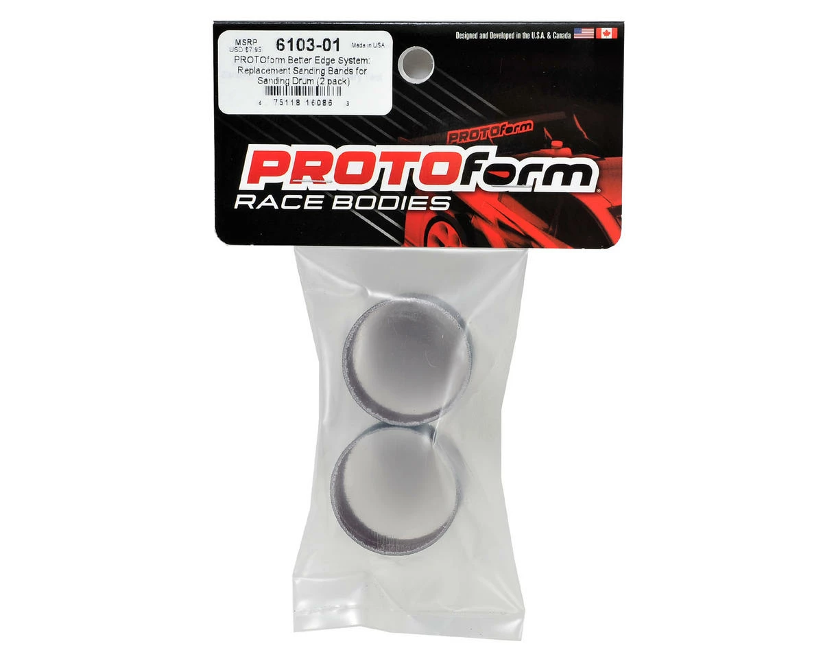 This is a pack of two replacement Protoform Better Edge: Sanding Drum 120-Grit Silicon Carbide Sanding Drum Bands. These are replacements for the Protoform Better Edge Sanding Drum (PRM6103-OO).