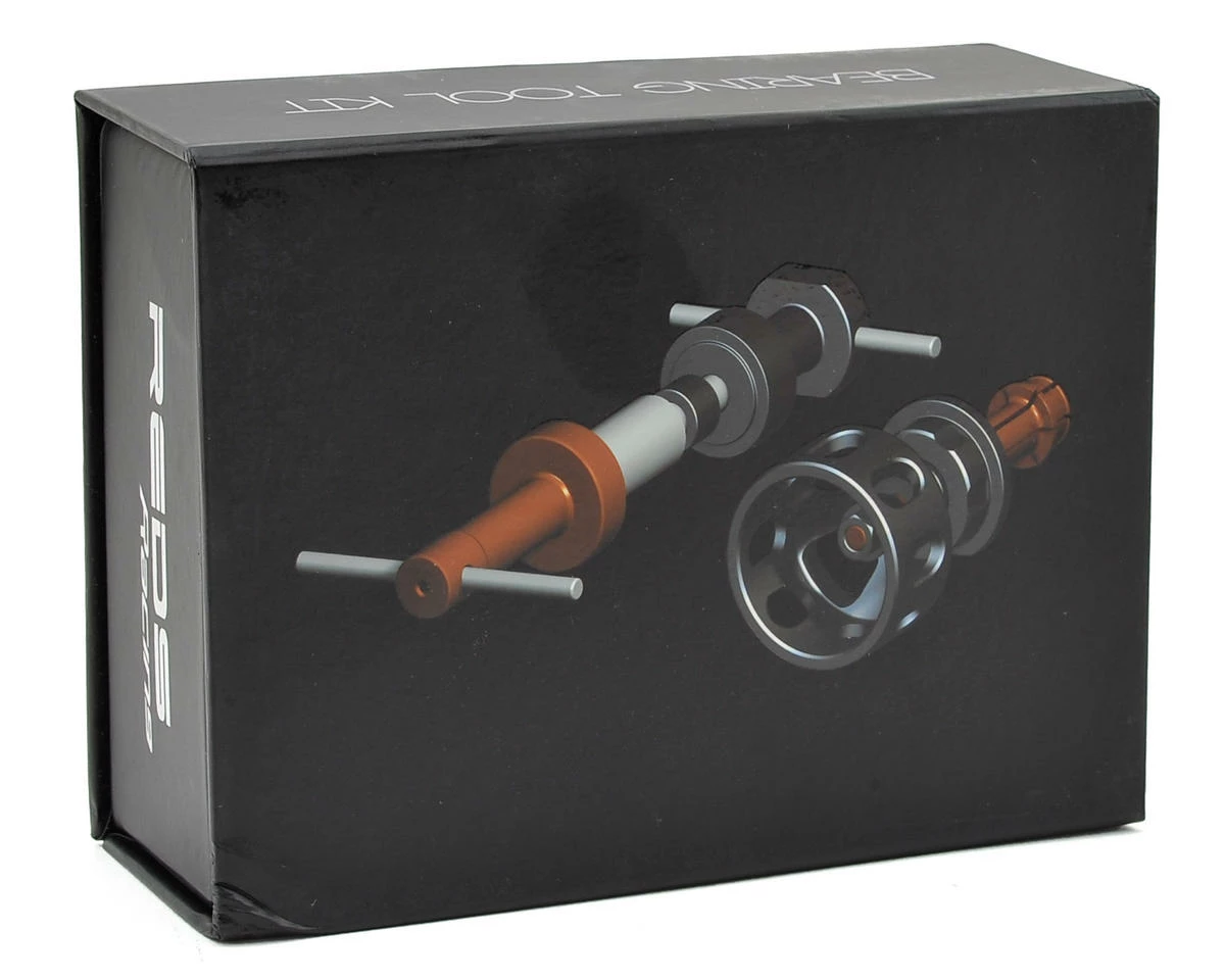 The REDS Engine 12mm Engine Bearing Tool Kit for .21 size engines was developed for nitro racers that want to perform critical maintenance on their nitro engines. The kit includes a puller for 7mm and 14mm bearing removal and a presser for installation. The presser is made from high-quality Hard Coated Spring Steel. The bearing surfaces are ground for high precision bearing installation. The innovative rear bearing puller is made with Hard Coated Spring Steel and aluminum for unsurpassed lifespan and durability. All parts are CNC-machined for ultra-high precision. The lightweight design and compact size, make this tool easy and comfortable to use.