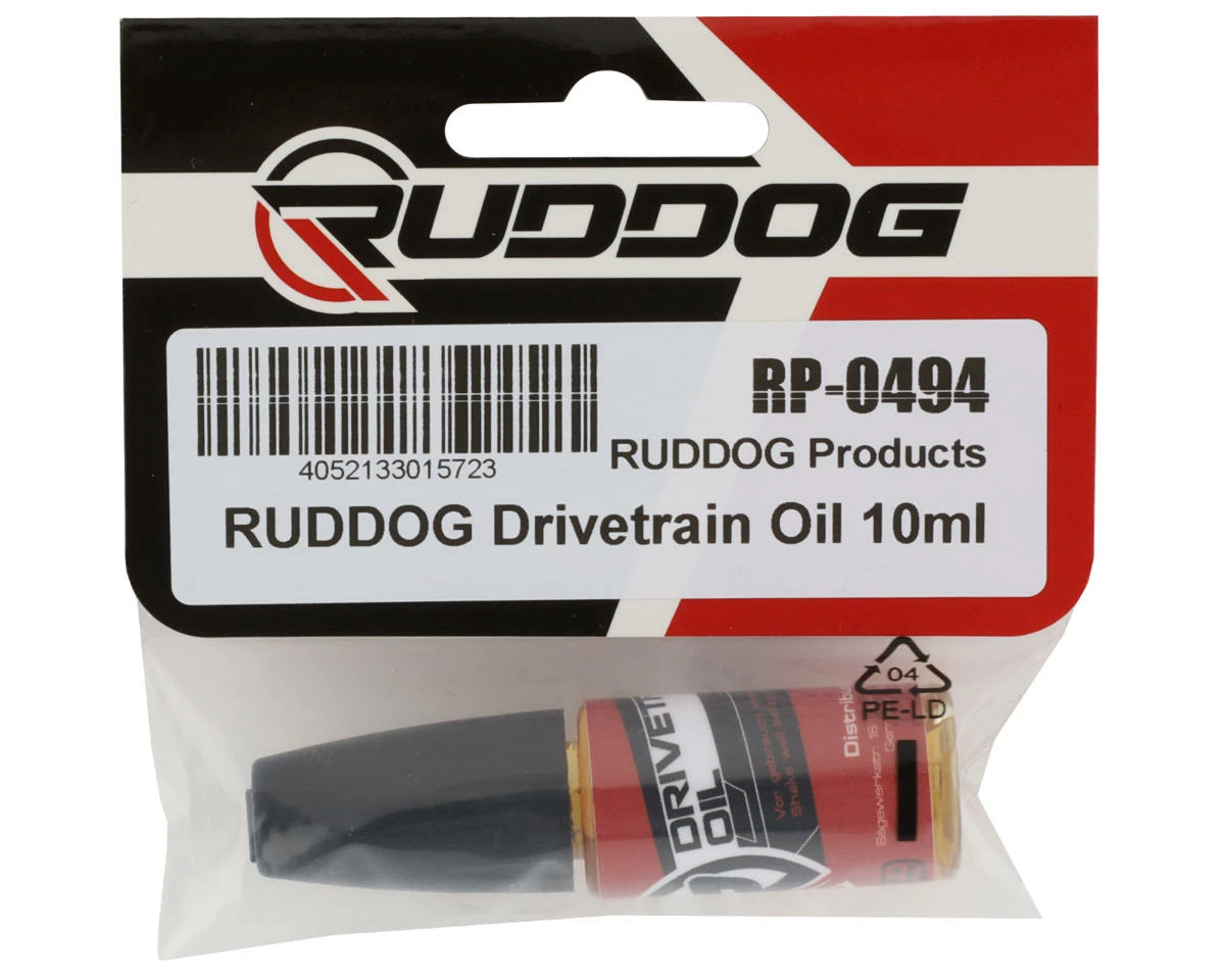 Ruddog Drivetrain Oil. This PTFE lubricant is ideal for your RC cars drive shafts and similar metal parts. Thanks to its special formula, it ensures low friction and does not attract dust and carpet fuzz. The convenient sized 10ml precision oiler fits into every tool bag and makes maintenance work a breeze. Package includes one 10ml bottle.
