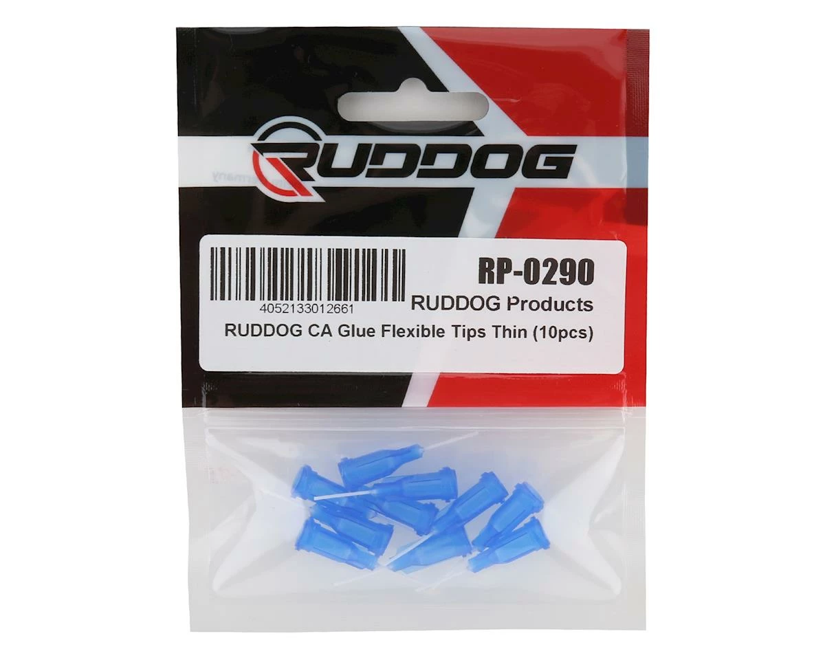 Ruddog Thin CA Glue Flexible Tips help to make gluing tires easier and faster, with more precise glue application. Fits most CA bottles and if you clean them out after use, they can be used multiple times. Package includes ten tips.