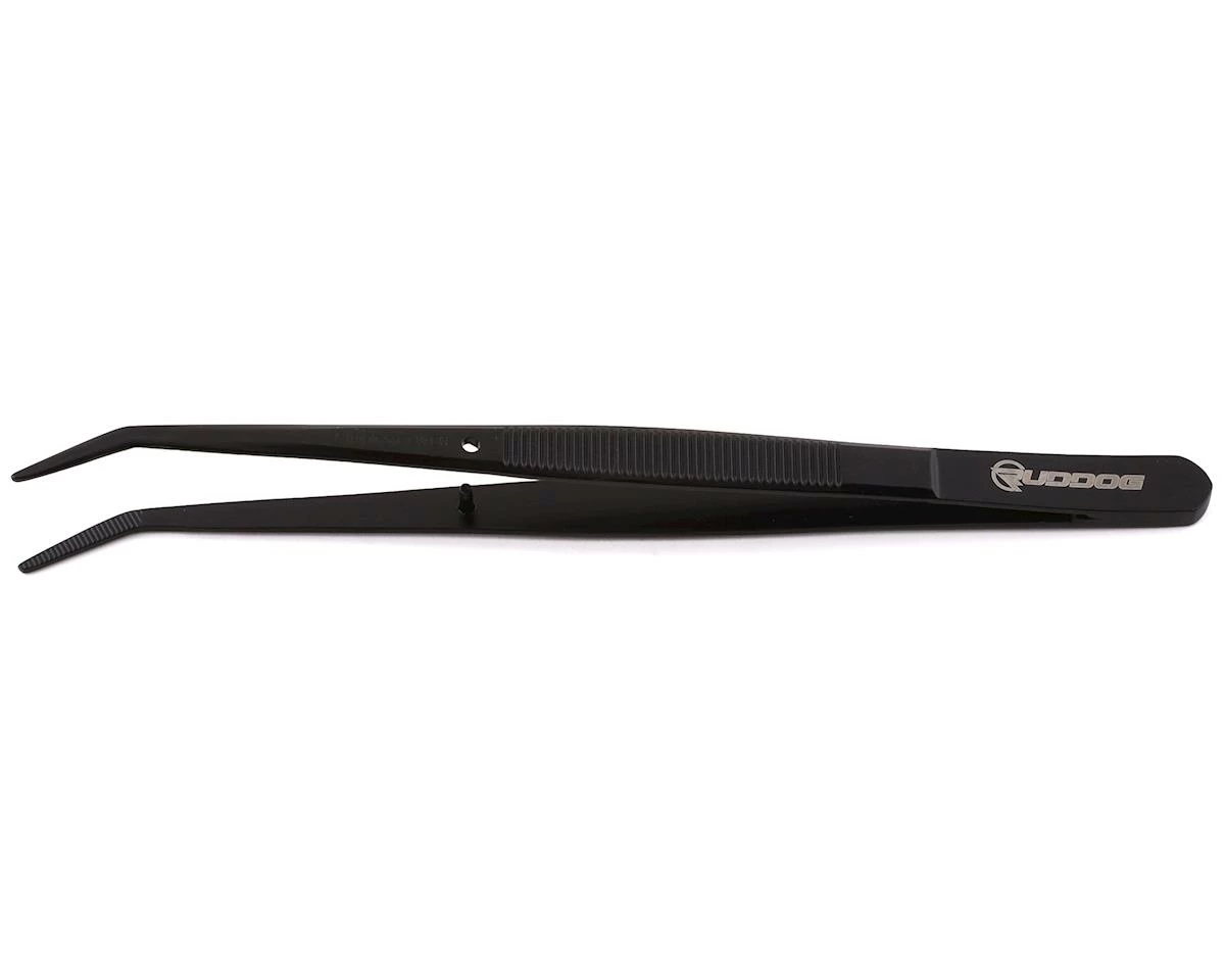 Ruddog Tweezers are an ideal tool when building, maintaining or setting up your RC car. They are made of high-quality stainless steel and sport a protective surface coating that not only reduces wear but also adds visual impact with its stealthy black look. The tweezers come in handy when having to deal with all sorts of small parts such as shims, washers, tiny screws or differential internals such as diff balls or gears. To finish off the look, the RUDDOG logo is engraved for brand identification.