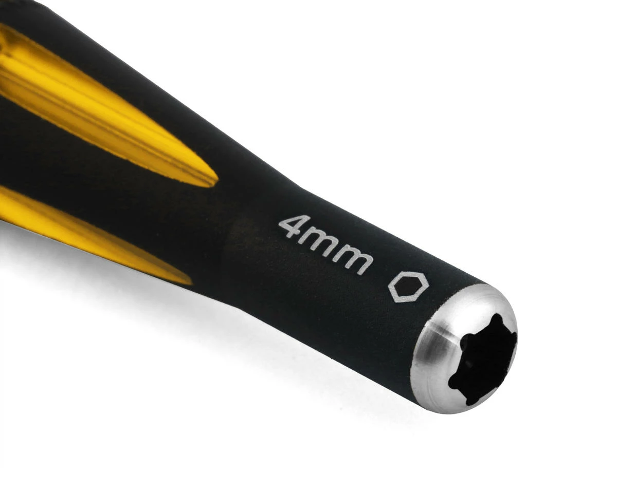 This is the Samix SCX24 2-in-1 Hex Wrench/Nut Driver. This two in one tool gives you the two most common hex and nut driver needed to work on the SCX24 rock crawler. The driver features a high quality tip attached to a CNC aluminum handle with black and gold anodizing. This is an excellent addition to your toolbox and gives you a convenient option for working on your SCX24.