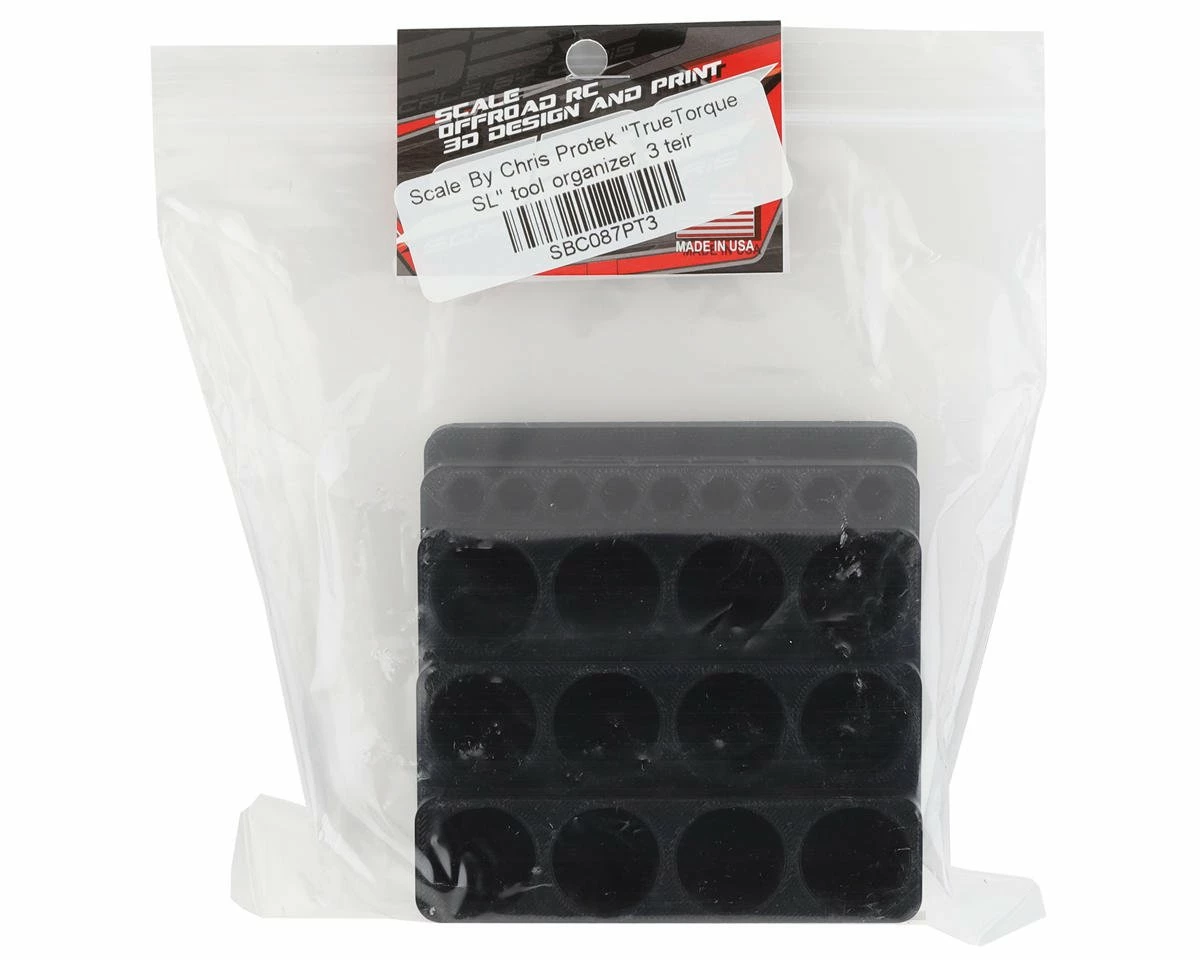 This is the Scale By Chris 3 Tier Tool Organizer. Intended to fit the ProTek hand tools and driver bits this tool organizer offers convenient storage for your most used tools. Capable of handling up to twenty one tools this is an excellent option to clean up and simplify your work space. Package includes one 3 tier tool organizer.