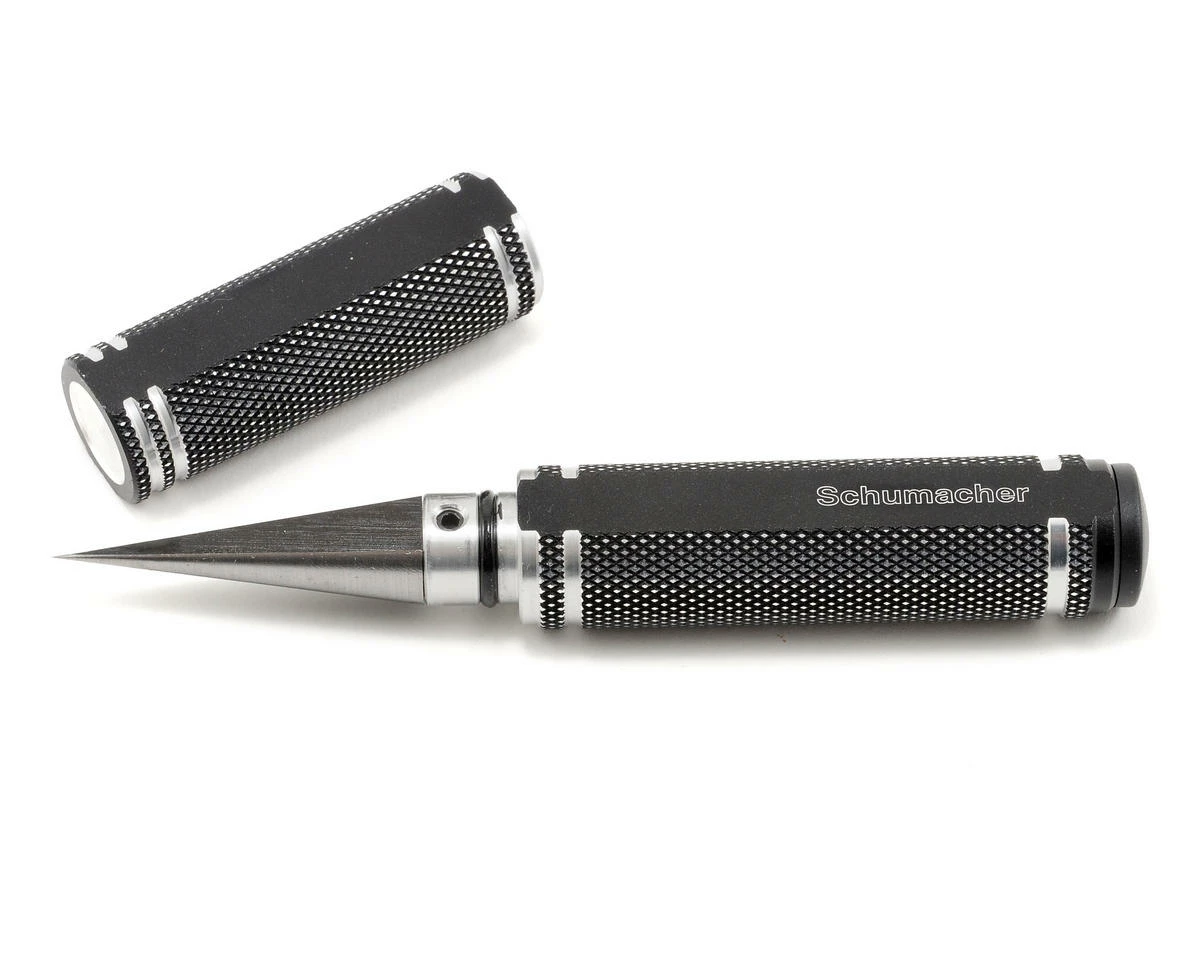 Schumacher Trix Tools feature precision CNC machined hardened steel tips with oversize knurled aluminum handles. The large diameter handle has milled flats to prevent the tool from rolling off your pit table and also features a color coded end button for quick identification of the tool’s size.