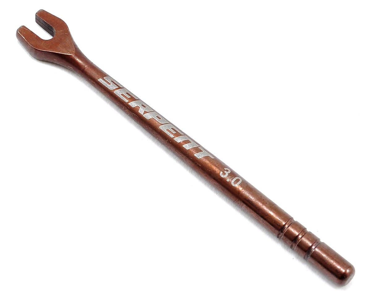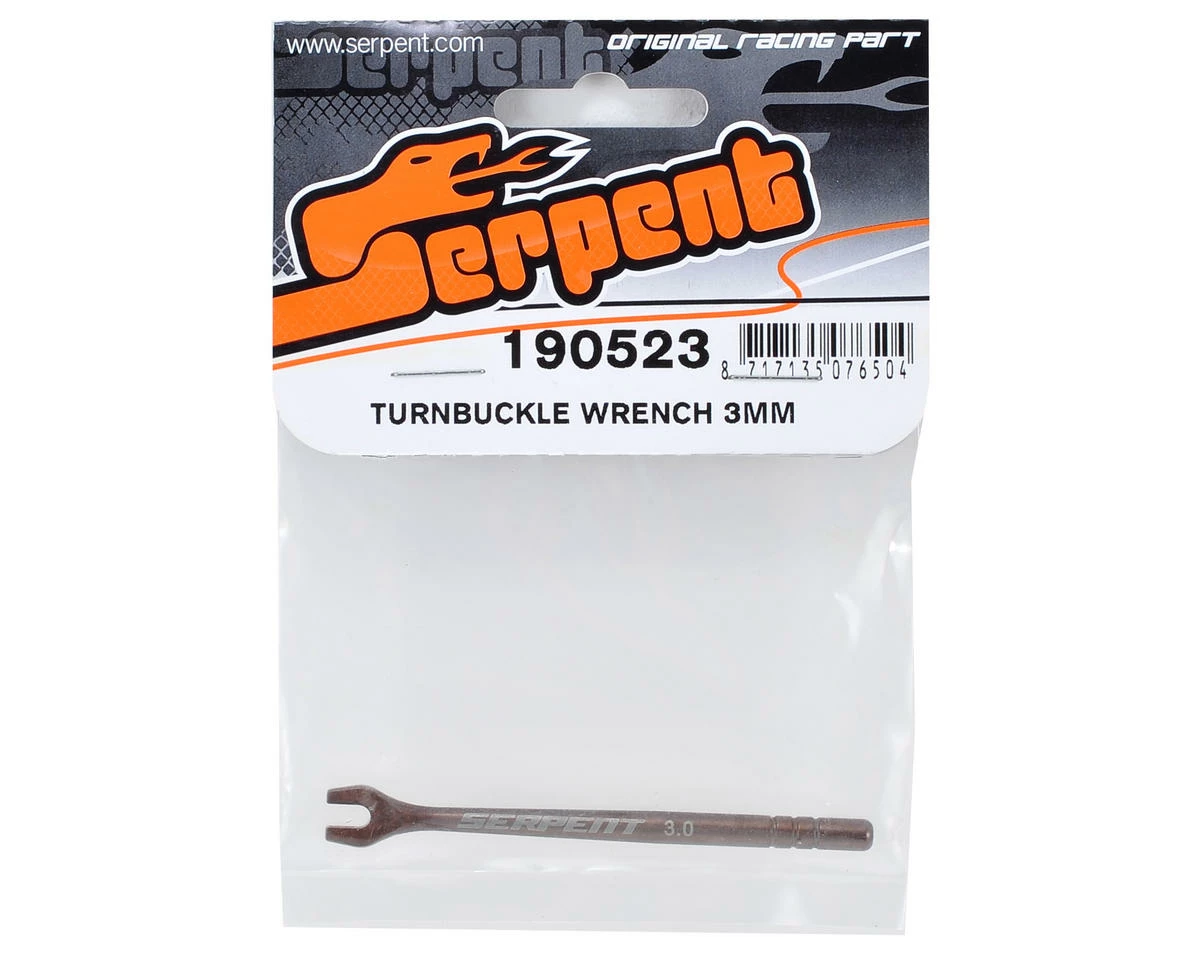 This is a Serpent 3mm Turnbuckle Wrench. Serpent turnbuckle wrenches are precision machined from hardened spring steel and are 75mm long.