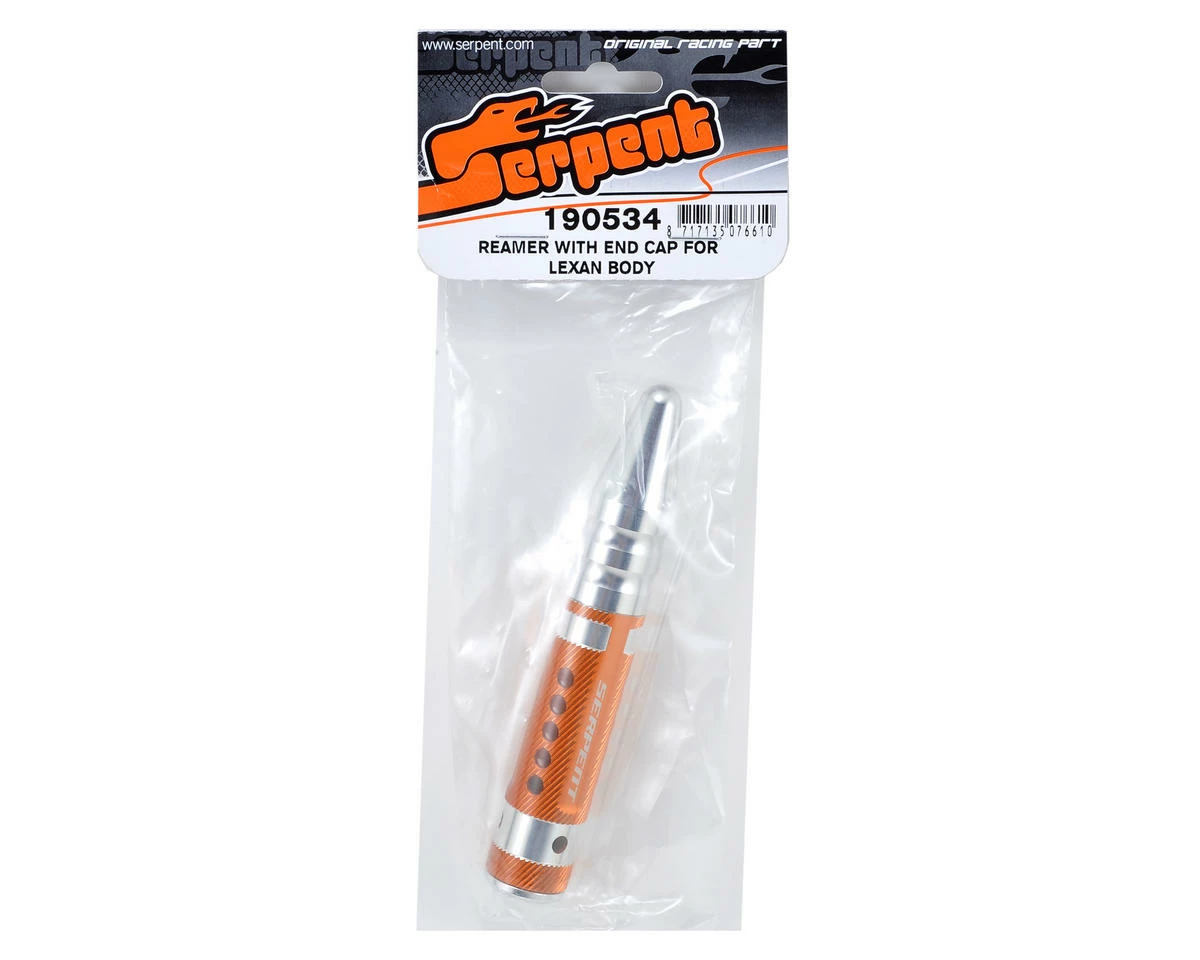 This is a Serpent Body Reamer. Serpent tools feature a lightweight machined aluminum handle and an engraved Serpent logo, combined with precision machined steel tips. The shape of the handle prevents the tool from rolling off the work bench and the size of the tip is engraved in the handle for easy identification. This body reamer features a double edged cutting head, that displays millimeter increments up to 16mm.