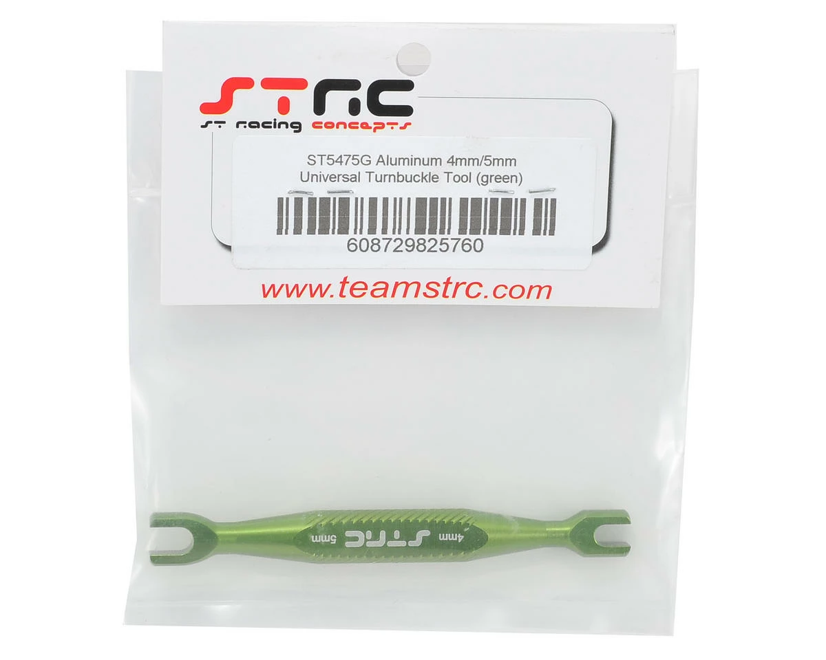 This is a ST Racing Concepts Aluminum Turnbuckle Wrench, with 4mm & 5mm ends. This light weight wrench has been CNC machined to have exact fit over 4mm turnbuckles (like ones found on Traxxas Slash, Rustler, Bandit and Stampede, or all popular on-road touring cars today) and the 5mm turnbuckle adjustment nut on the T-Maxx, E-Maxx and Revo, or any vehicle that uses a 5mm size turnbuckle. This is a great tool to use when tuning your favorite R/C racing machine