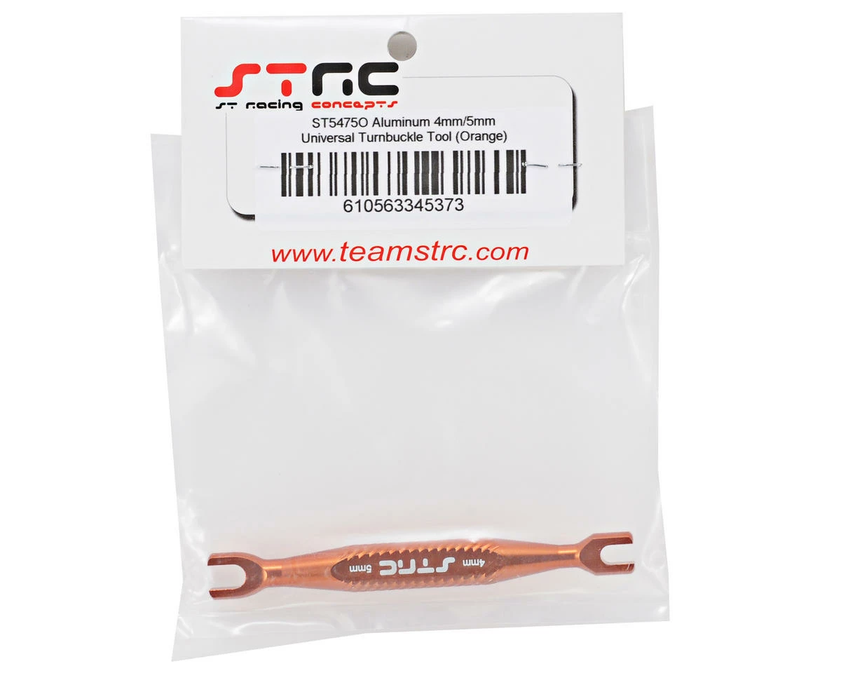 This is a ST Racing Concepts Aluminum Turnbuckle Wrench, with 4mm & 5mm ends. This light weight wrench has been CNC machined to have exact fit over 4mm turnbuckles (like ones found on Traxxas Slash, Rustler, Bandit and Stampede, or all popular on-road touring cars today) and the 5mm turnbuckle adjustment nut on the T-Maxx, E-Maxx and Revo, or any vehicle that uses a 5mm size turnbuckle. This is a great tool to use when tuning your favorite R/C racing machine.