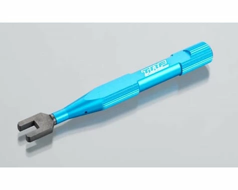 This is a Tamiya Wrench for Aluminum Turnbuckles. This wrench is designed for use with aluminum turnbuckle shafts and features a durable tip section. The grip also features anodized blue color and the tip is finished in black to distinguish it from other wrenches.