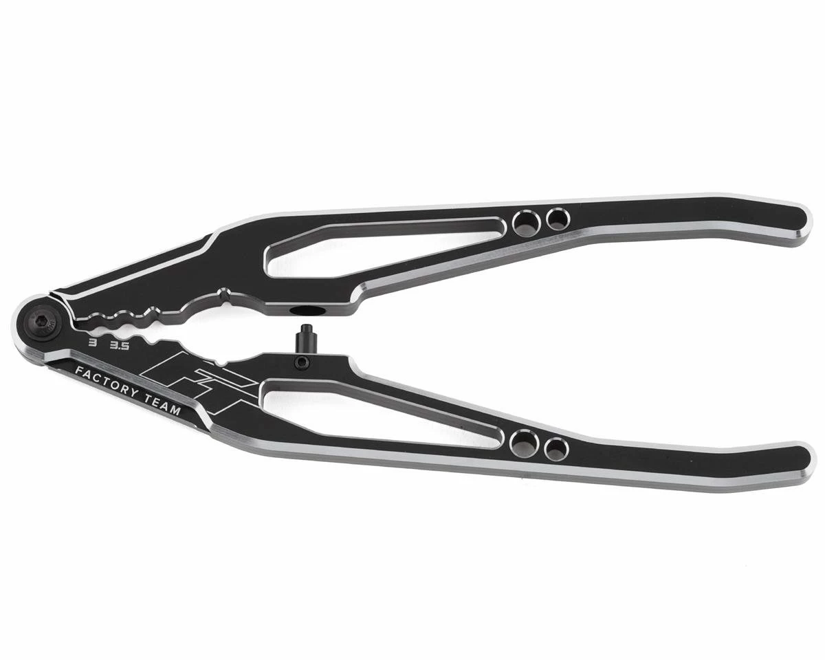 The Team Associated Factory Team Shock Shaft Multi-Tool Pliers are a must have in your toolbox! Featuring black anodized CNC machined aluminum construction this multi-tool is not only built to last but looks incredible as well. From holding your shock shaft for an easy shock build to soldering your bullet plugs, this tool helps you every step of the way.