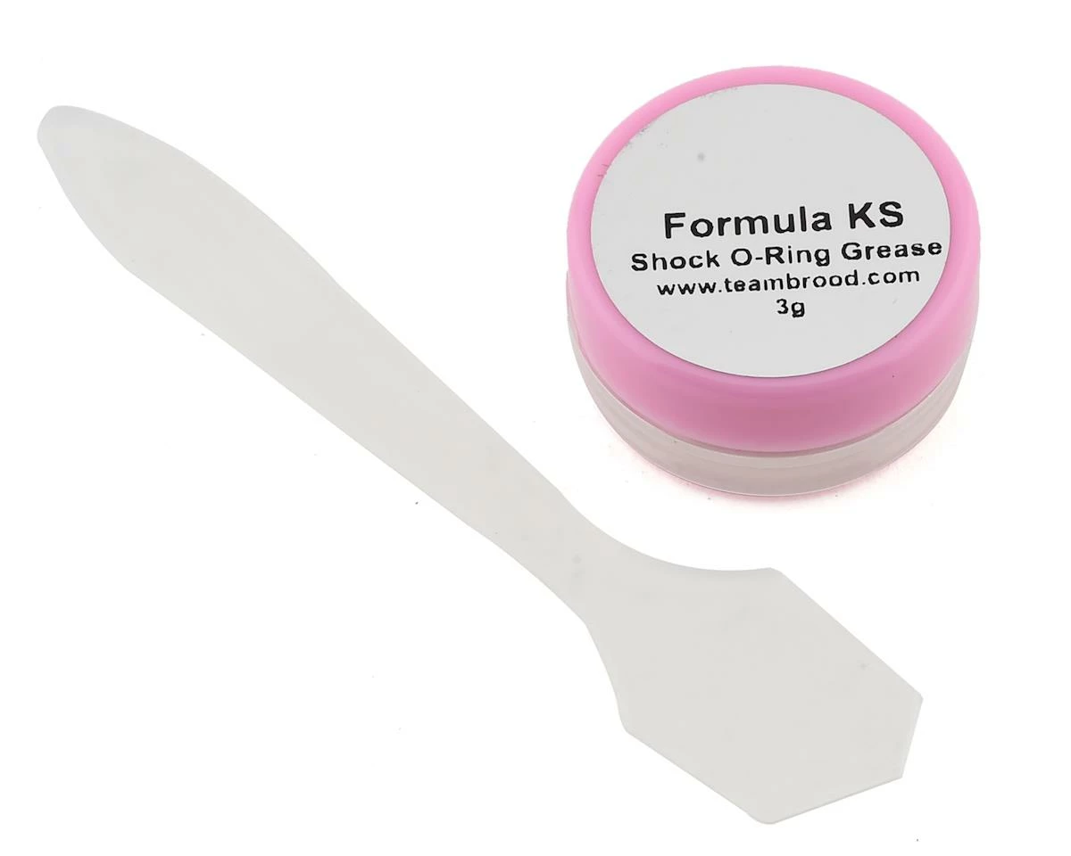 Team Brood Formula KS – Shock O-Ring Grease is a silicone based material that helps ensure sealing and lubrication to sliding metal parts by slightly swelling the O-Rings. Its lithium soap base allows it to have a wide temperature range to prevent it from changing viscosity during use, while maintaining excellent corrosion and oxidation resistance. Stop leaky or sticky feeling shocks dead in their tracks and keep your shocks performing at optimal levels. Comes with easy applicator stick. Only recommended for Shock O-Rings.