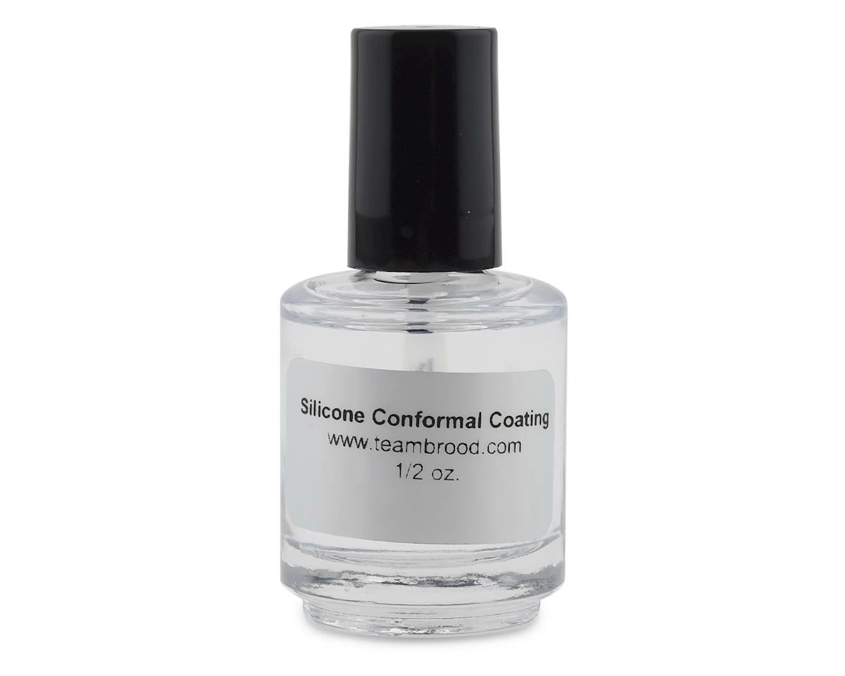 Team Brood Silicone Conformal Coating is a 1-part silicone-acrylic blend coating the cures to a clear flexible, smooth and durable finish. The brush tip allows simple application and can be handled in 15 minutes. Specifically formulated for RC applications where flexibility, durability and high service temperature are a must. Provides an exceptionally strong protection against moisture, dirt, dust, corrosion, thermal shock and static discharge.