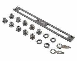 The Team Integy 1/8 Universal Setup Station with Bag is a complete thirty piece Universal Setup Station System. Crafted from aluminum and anodized in a gunmetal finish, the setup station can measure each corner of your vehicle individually – up to 15-degrees of camber, 30-degrees of caster, and +35/-40-degrees of toe. The measuring plates all ride on ball bearings for smooth movement and precise readings. Out of the box, the Universal Setup Station System will work with most 1/8-scale buggies or truggies with standard 1/8-scale axles and wheel nuts. The included carrying bag features a rubber grip handle and a two-sided zipper for storing the station when you are on the move.