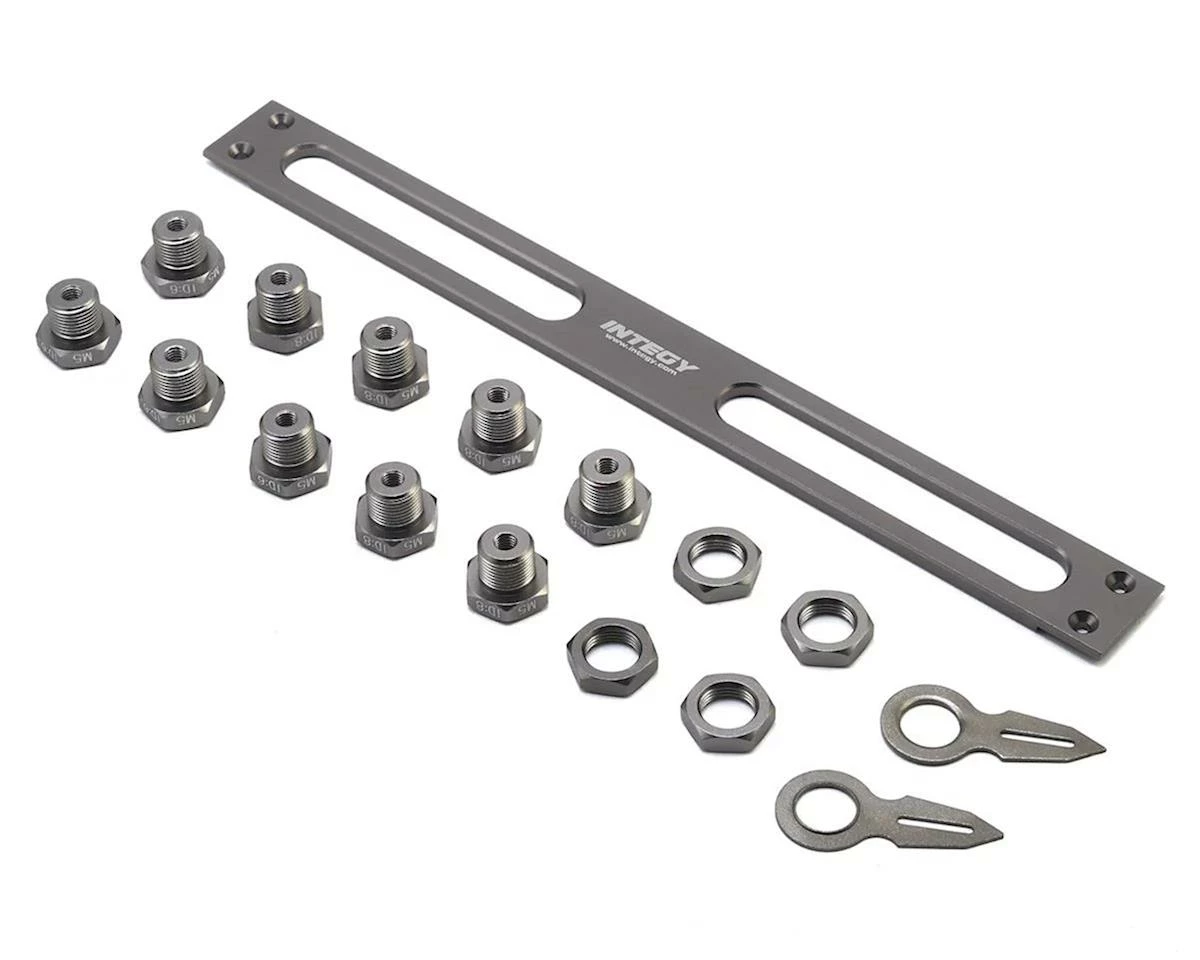 This is the Team Integy Universal Off Road Setup Station for 1/8th and some 1/10th scale off road vehicles. This all in one off road setup system is used to measure Caster, Camber, Toe and Steering Throw Symmetry on off road vehicles. From 1/8 scale buggies and trucks, to 1/10 buggies and monster trucks that previously could not use a setup system due to the axle size, now there is a single setup system that is compatible with all of them, with the addition of the optional adapter sets (not included – must be purchased separately).