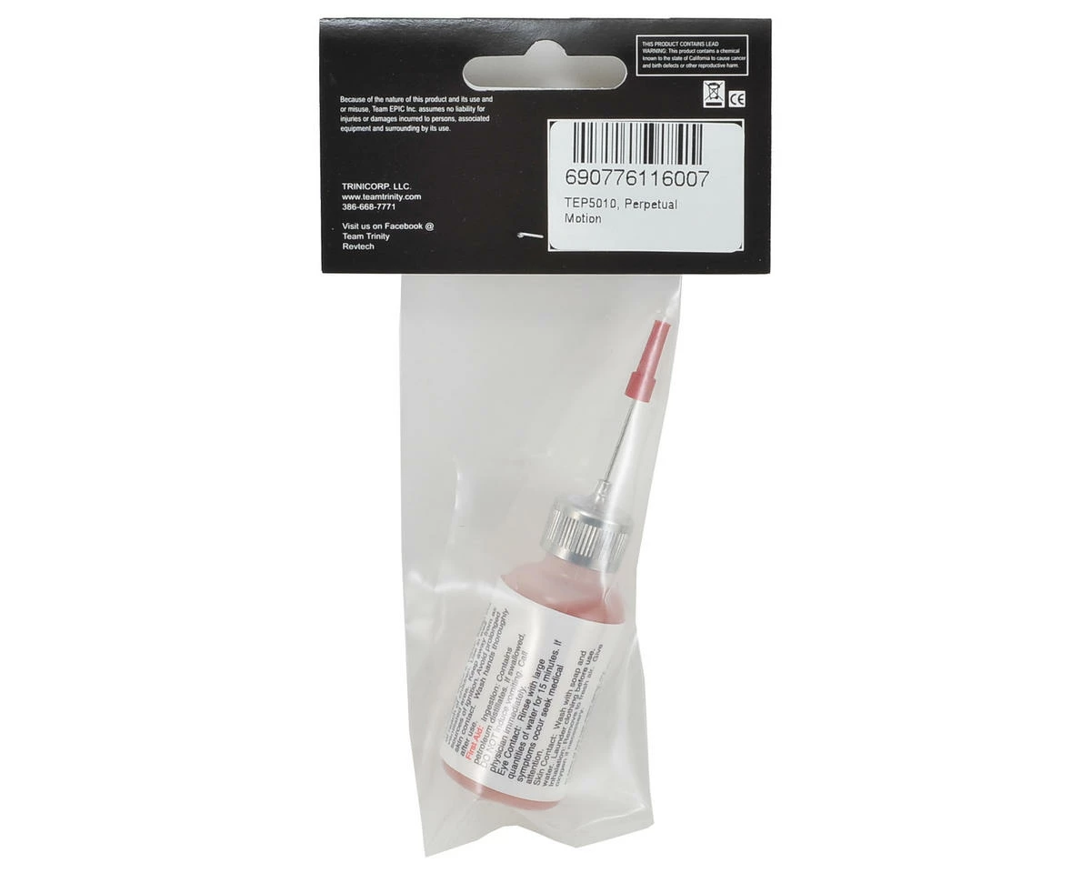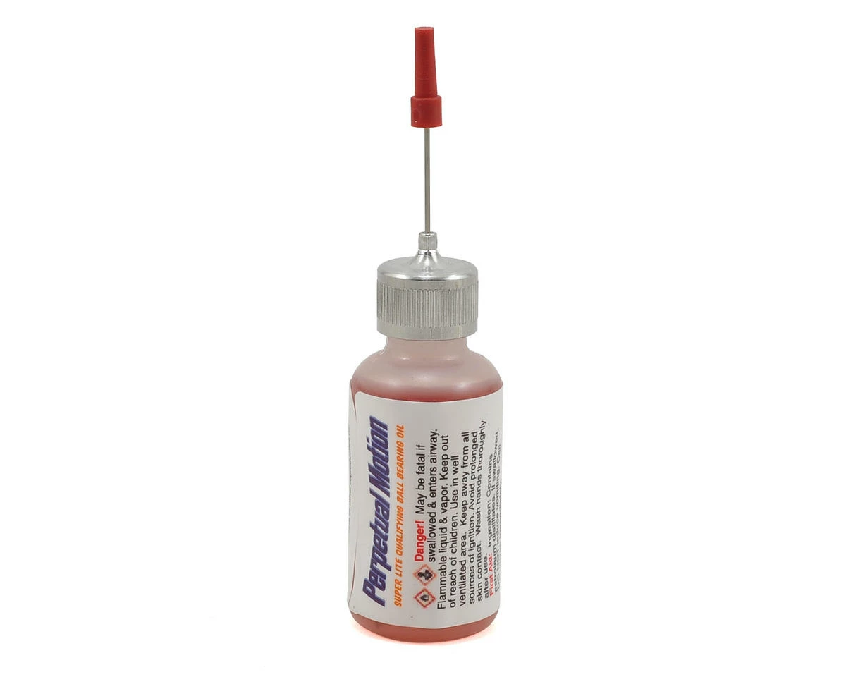 “Perpetual Motion” is an ultra light weight ball bearing oil that provides exceptional lubrication to high RPM bearings. Additionally, while it lubricates, it also purges the old oil from the bearing. The result is lower drag than Trinity’s Royal Oil.